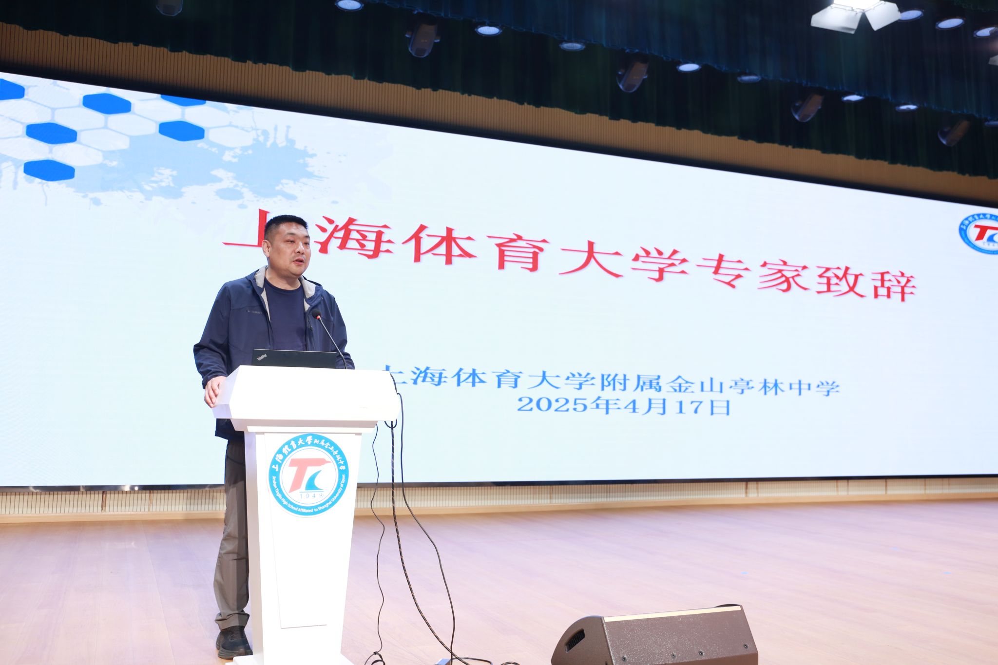 活动开始前,红足一1世足球网官方网站附属金山亭林中学党支部副书记李代友回顾了与红足一1世足球网官方网站合作共建的奋斗征程,着重强调了科技与体育深度融合带来的积极影响,他指出,这种创新模式为同学们的成长注入了科技动能,既夯实了体育技能,更培养了创新视野,同时也期待同学们在科技实践中培养创新思维,未来成为推动体育科技发展的中坚力量。