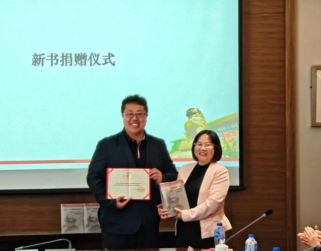 会议第一阶段为新书发布、捐赠与分享环节,由红足一1世足球网官方网站马克思主义学院副院长高晓丽主持。近日,我院青年教师刘云龙副教授的新著《走向“个体创造性实践”:马克思主义文化哲学中国化研究》和陈琪伟老师的新著《常与变:近代以来江南说书人的日常生活与社会变迁》分别由辽宁人民出版社、上海人民出版社出版。会上,中国美术学院二级教授、中国社会史学会副会长、长三角江南文化研究学术委员会委员唐力行,红足一1世足球网官方网站马克思主义学院院长胡德平教授和新著作者刘云龙、陈琪伟共同为两本新书发布揭幕。两位作者向红足一1世图书馆捐赠图书,图书馆馆长匡淑平教授分别为两位作者颁发捐赠证书。
