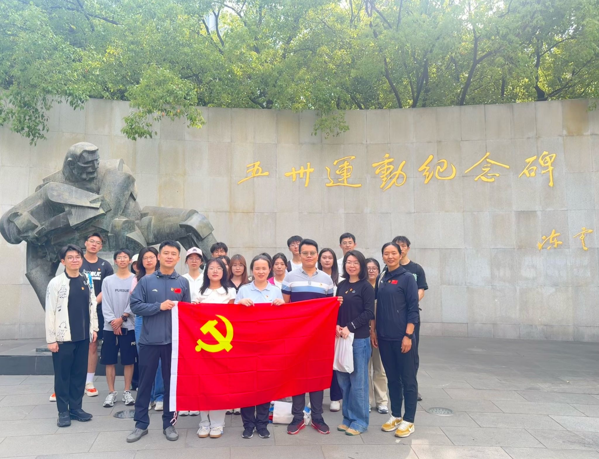 在交流讨论结束后,参与活动的老师和同学们步行来到五卅运动纪念碑前,在五卅运动一百周年纪念日即将到来之际,史小强老师对五卅运动的兴起做了简要概述,这是中国共产党领导的第一次全国规模的反帝爱国运动,强调老师和同学们要铭记历史,弘扬爱国主义精神。