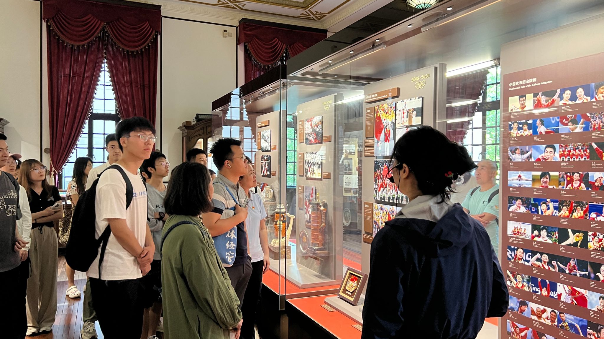 在现场,同学们就地对本次参观活动开展积极讨论,博士研究生孙震同学表达了此次参观后对体育精神的内涵有了更深刻的认识,博士研究生李宁同学根据自身的运动员经历诠释了体育文化的重要意义。三名体育赛事志愿服务工作的优秀学生代表,结合自身的志愿服务经历和参观感受做了精彩分享,张锐同学分享了体育赛事所蕴含的体育文化,梁昕睿同学分享了从运动员身上看到了体育精神的传承和弘扬,何章缘同学分享了从博物馆的展品中感受到了体育人开拓进取的奋斗精神。