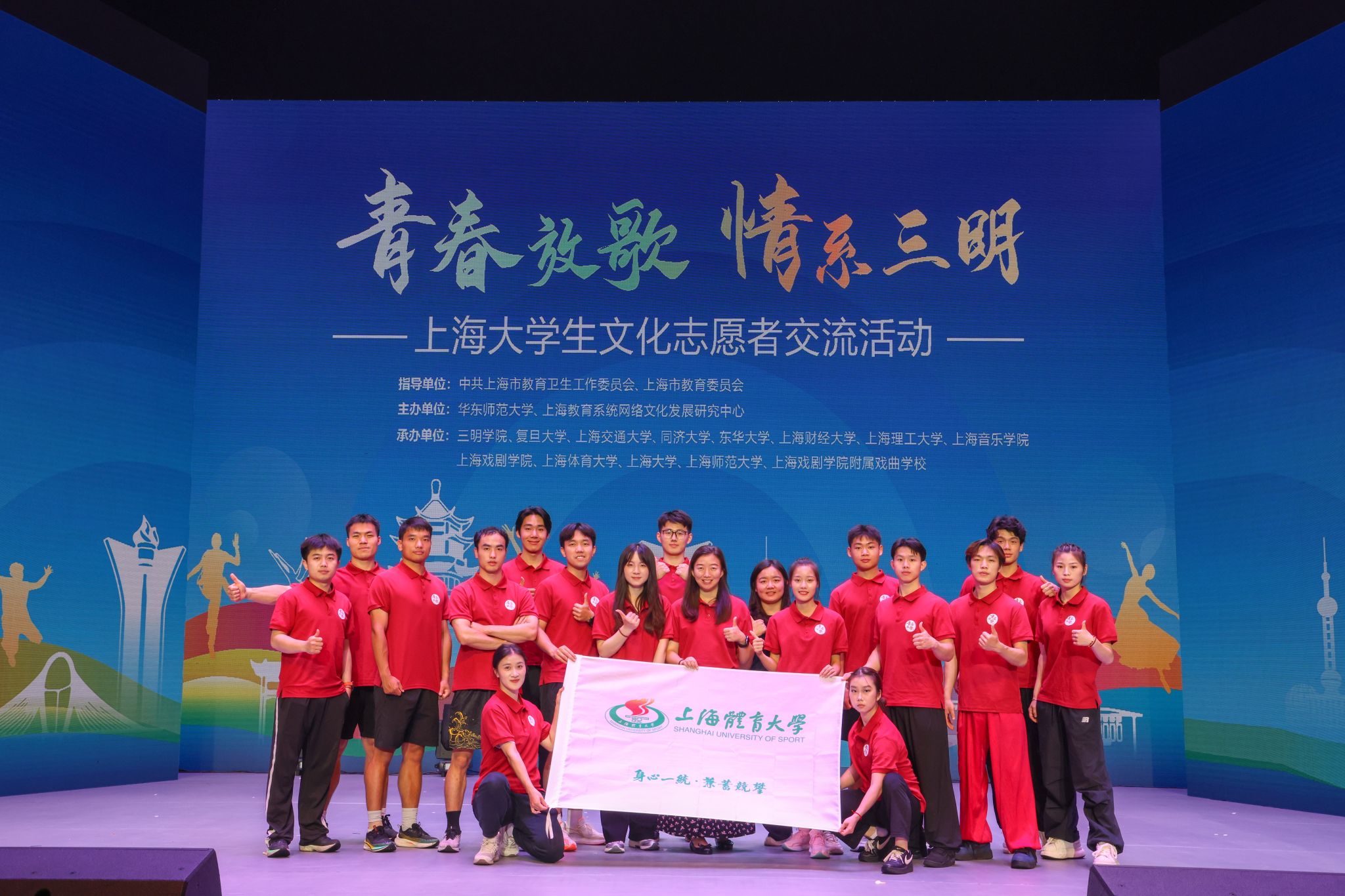 以青春汇活力,以文化促交融,上体学子携武术表演节目《风华武彰》和花样跳绳节目《绳彩飞扬》亮相三明,并高质量完成了两场演出。来自华东师范大学、三明学院、复旦大学、上海交通大学、同济大学、东华大学等学校的师生还带来昆曲、舞蹈、声乐、服装秀、木偶戏、川剧变脸、民乐合奏等各种节目,生动体现了文化交流的多元化和创新性。中华文化在青年一代的创新演绎中焕发蓬勃生机,非物质文化遗产在传承与创新中生生不息。