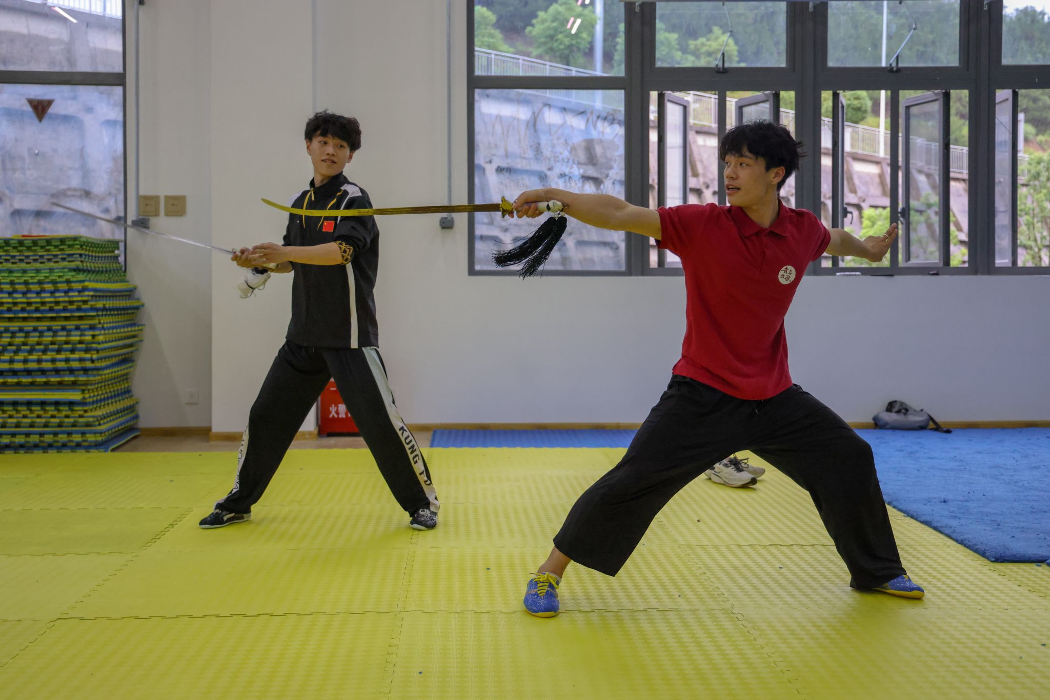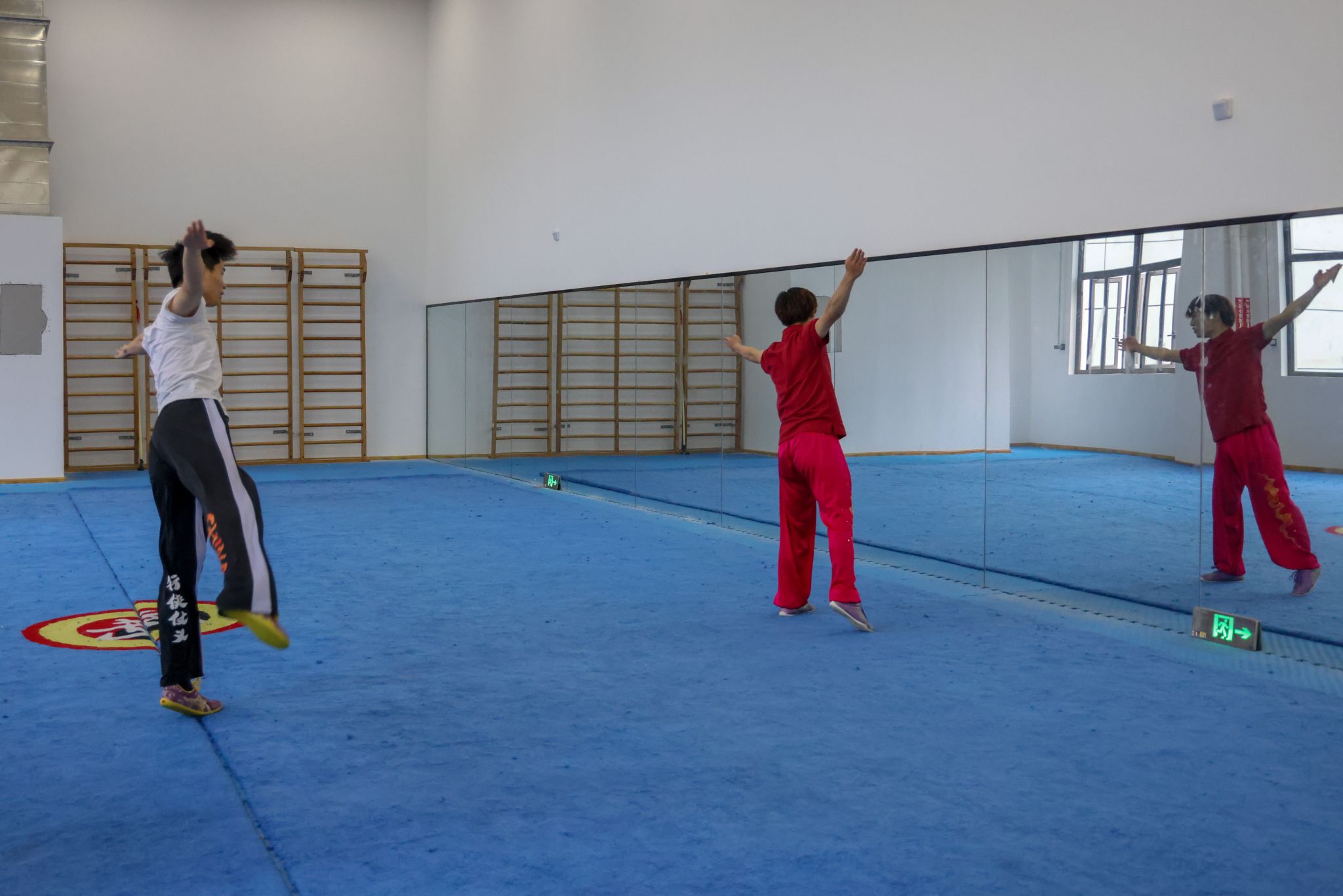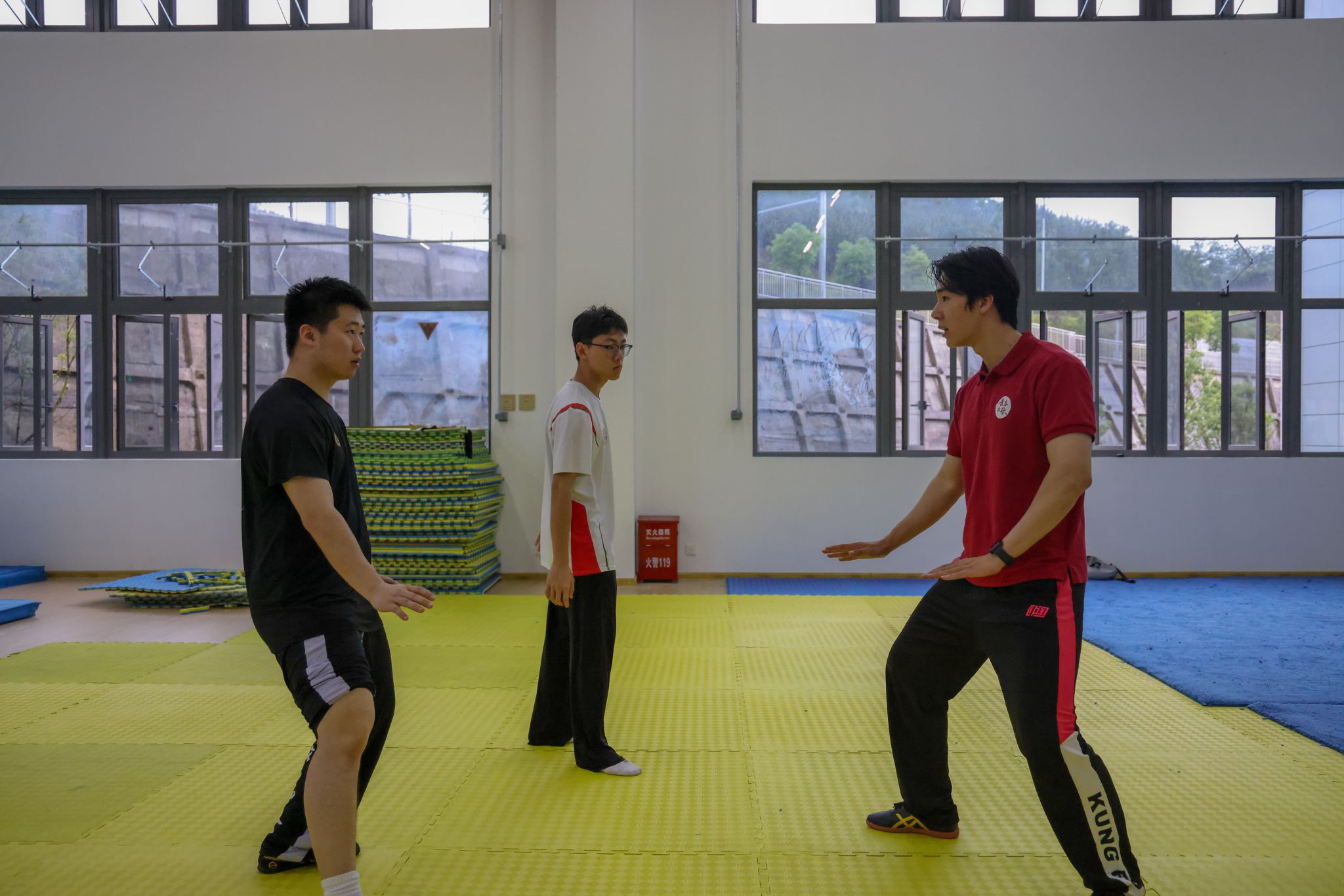 演出间隙,三明学院武术队学生主动来到后台,邀红足一1世武术学院学子至训练场地交流。在轻松而热烈的氛围中,两校学生抛开校际界限,就武术训练方法、技术要领、比赛经验、动作编排等进行深入探讨,上体学子将在学校所学的专业知识和训练方法倾囊相授。双方相互切磋技艺、分享经验,充分体现了“以武会友、共同进步”的武术精神。这场源于后台邀约的自发交流,成为此行鲜活、动人的一幕。