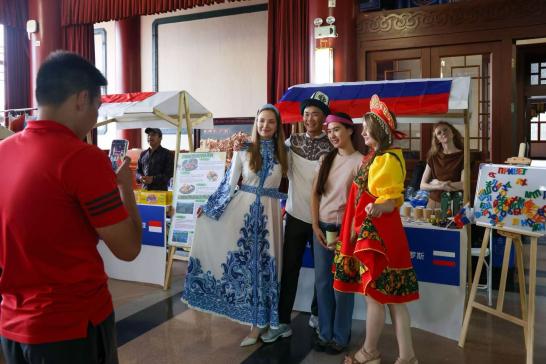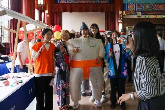 开幕式后,绿瓦大礼堂外变身“地球村”,国际游园活动拉开序幕,由美国、希腊、巴基斯坦、日本、越南、土库曼斯坦、印度尼西亚、俄罗斯等国留学生,以及上海中医药大学、东华大学师生共同打造的多个文化摊位,集中展示了各国美食、手工艺和体育文化。中外师生穿梭其间,品尝风味、体验手作、交流故事,沉浸式感受“各美其美,美美与共”的文化交融图景。