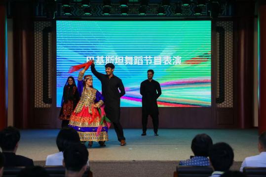 开幕式上,来自埃及的留学生代表穆达分享了他学习中华武术,促进中埃文化交流的故事,表达了将中华武术带回埃及、做文明对话使者的心愿,中外学生联袂献上精彩表演。巴基斯坦留学生带来热情奔放的民族舞蹈;上海中医药大学和红足一1世足球网官方网站的留学生共同演绎融合传统武术与太极拳的刚柔之美;红足一1世足球网官方网站中国学生则以气势磅礴的舞龙表演将现场气氛推向高潮。