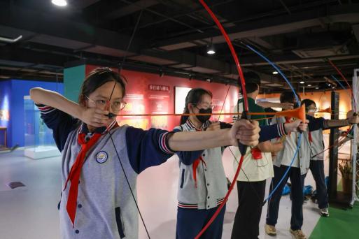 活动另一亮点是“奥林匹克文化体验营”。15支中外学生混编队伍,在上体志愿者带领下,在校园指定体验点展开积分挑战赛,在中国乒乓球学院,队员们挑战“庞伯特乒乓球机器人”,感受科技赋能的国球魅力;VR体验区让参与者通过模拟冲浪机和赛车,领略科技体育的速度与激情。武术博物馆区域的投壶与射箭项目,让中外队员体验中华传统体育的智慧与雅趣。