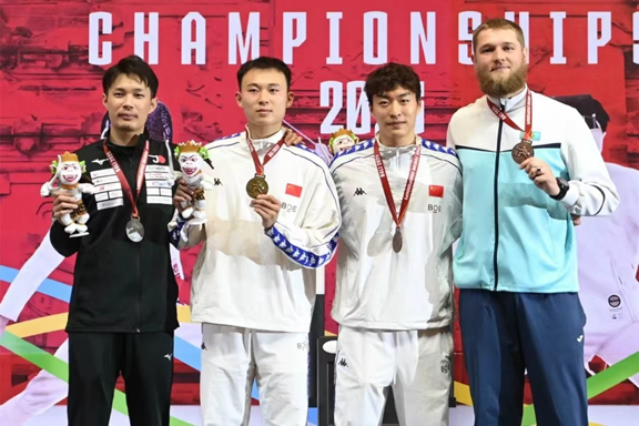本次赛事男子重剑项目高手如林,日本、韩国、中国香港等都是世界一流强队,共计有78名亚洲顶尖选手参赛,王子杰以小组赛5战全胜的不败战绩强势晋级。淘汰赛阶段,他先后以15-9、15-12、15-14、15-11的比分连克强敌,每一轮都展现出对关键分的精准把控。半决赛中,他以15-7战胜队友张新堃,顺利闯入决赛。