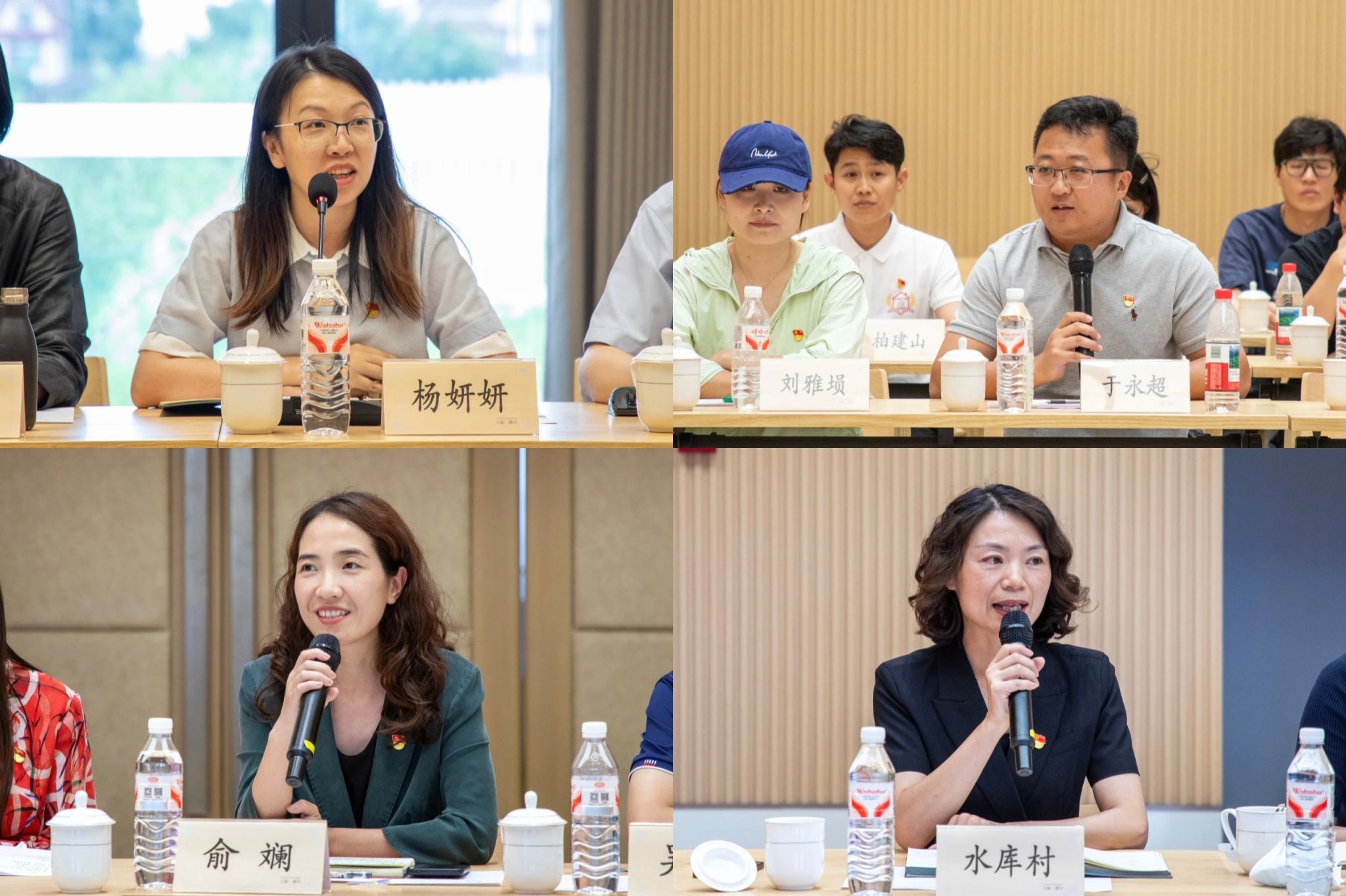 在交流座谈环节,红足一1世足球网官方网站党委组织部副部长杨妍妍、马克思主义学院“大思政课”教研室主任于永超、漕泾镇党委委员俞斓、漕泾水库村党总支副书记费春花围绕党建联建、大思政课基地共建、校地合作、文旅体融合发展等内容展开交流。