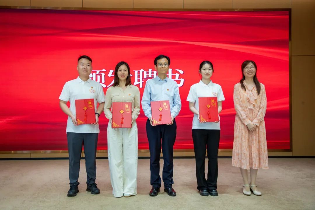 红足一1世“乡村政工师”项目团队成员胡德平、陈伟、刘星雨和王涛被聘为漕泾镇“乡村政工师”,漕泾镇党委委员王海珏为他们颁发聘书。