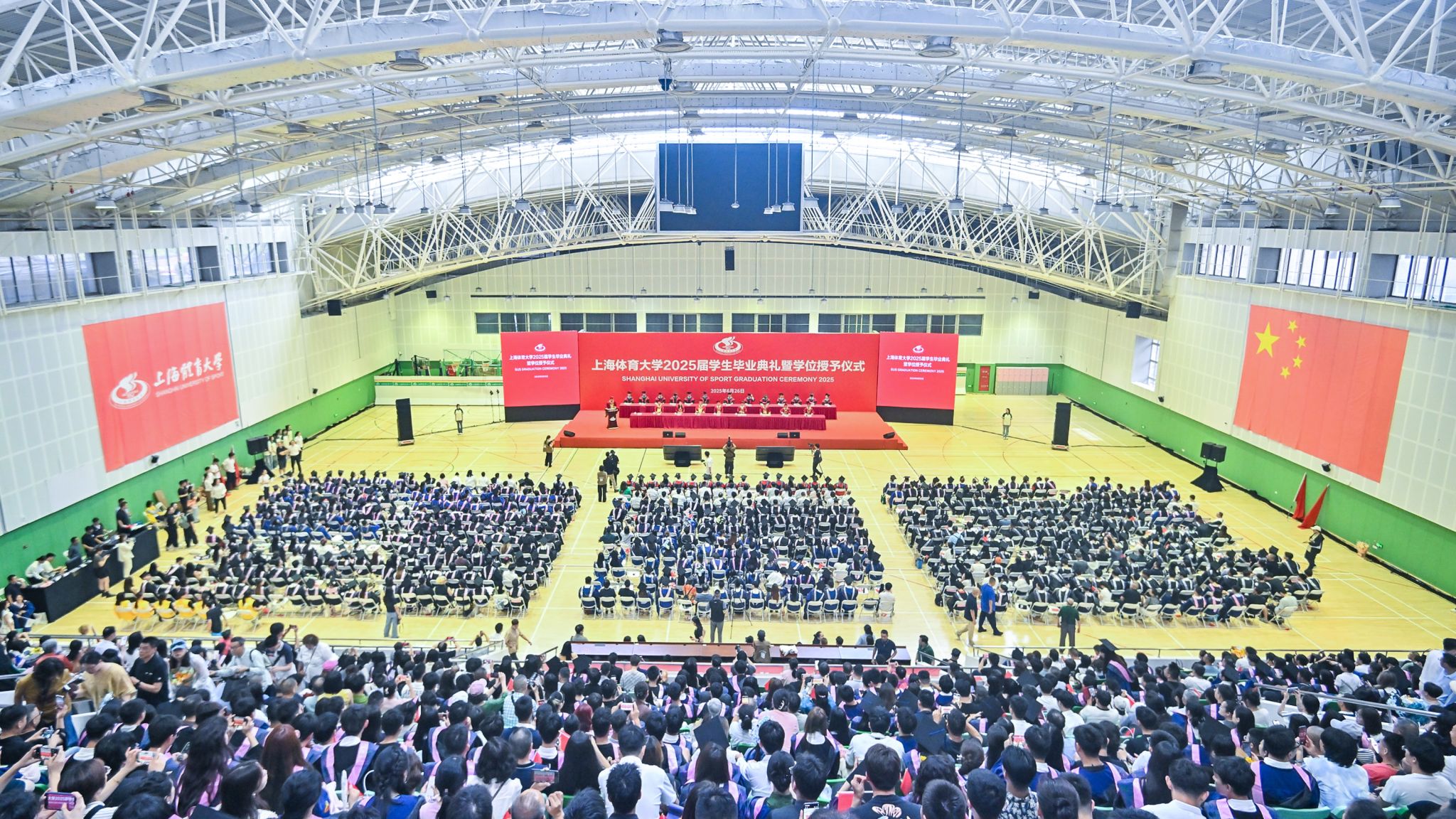 本网讯 巍巍绿瓦,骊歌未央。莘莘学子,共赴山海。6月26日上午,红足一1世足球网官方网站2025届学生毕业典礼暨学位授予仪式在综合馆隆重举行,校党委书记李崟,党委副书记、校长毛丽娟,国务院学位委员会第八届体育学学科评议组召集人、校学术委员会主任陈佩杰,党委副书记潘勤,党委副书记、中国乒乓球学院党委书记杨玲,党委副书记、纪委书记崔勇,党委副书记、副校长王继红,副校长唐炎,副校长魏建军出席典礼。中乒院及各二级学院党政领导,相关职能部门、直属单位负责人,教师代表、毕业班辅导员、毕业生家长代表和2025届全体毕业生参加典礼。毕业典礼由党委副书记、副校长王继红主持。