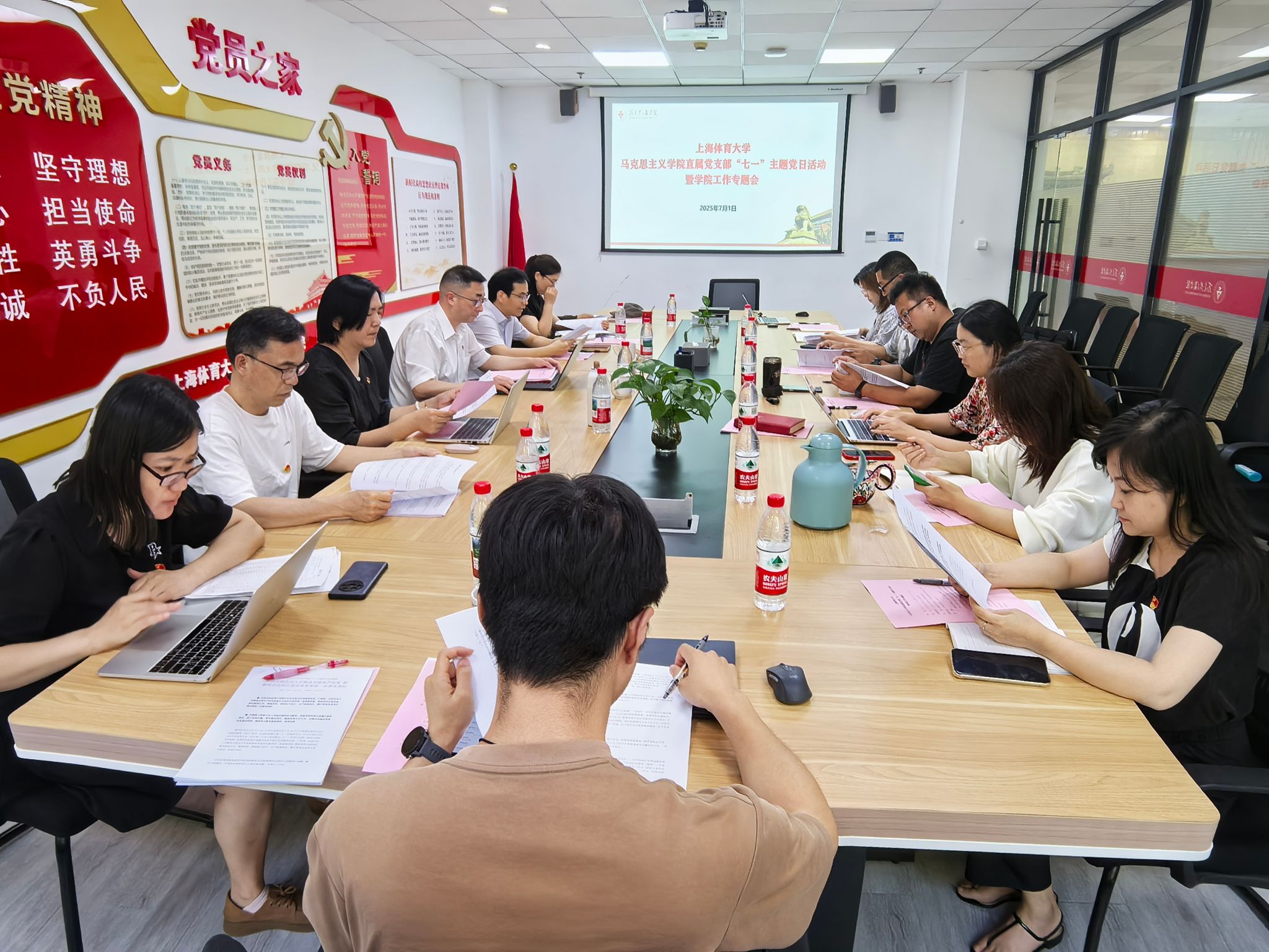 本网讯  7月1日下午,马克思主义学院直属党支部在学院123会议室举办“七一”主题党日活动,校党委书记李崟出席活动并讲授专题党课。马克思主义学院全体师生党员参加会议。