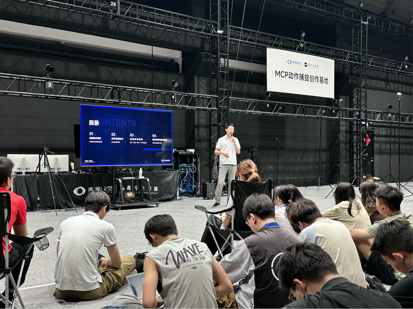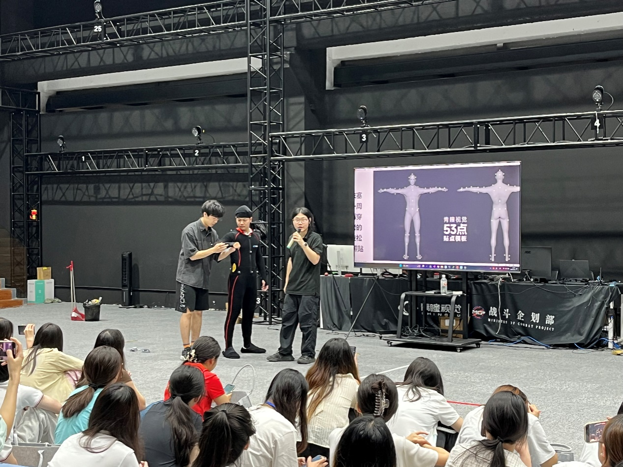 上午9:30,实践教学活动以一场干货满满的技术讲座拉开序幕。上海青瞳视觉科技许航老师聚焦光学动作捕捉技术,为师生系统梳理其从机械捕捉到光学追踪的发展脉络,用通俗语言解析核心原理——通过红外光学相机追踪人体反光标记点,经算法生成精准三维运动数据,这种"高精度、低延迟"的技术特性,使其成为数媒内容生产的核心工具。