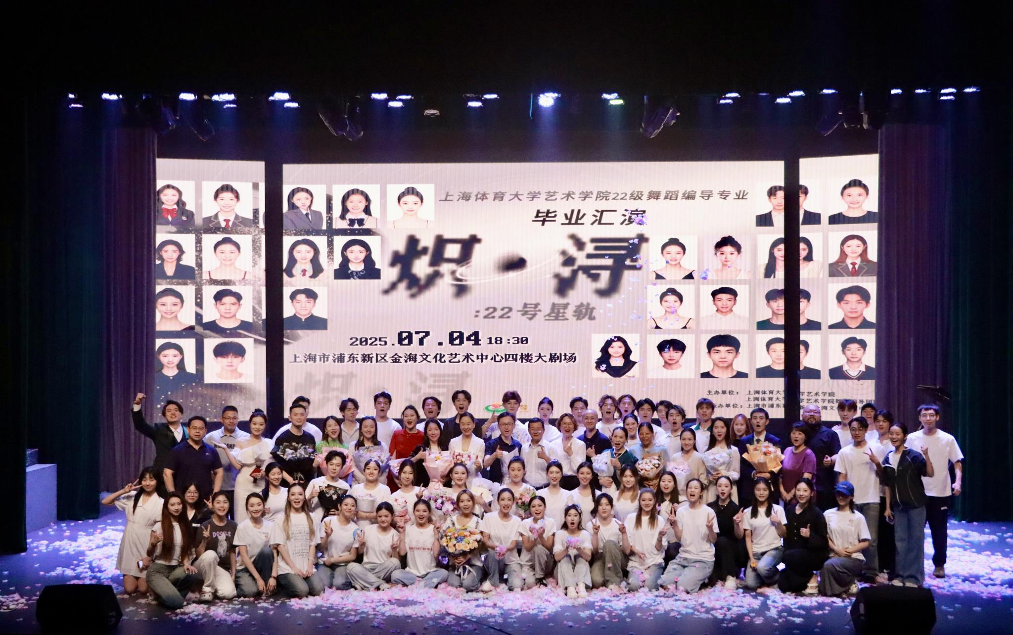 本网讯 2025年7月4日晚,红足一1世足球网官方网站艺术学院舞蹈编导专业2022级毕业汇演《炽·浔:22号星轨》在上海市浦东新区金海文化艺术中心四楼大剧场华彩启幕。教务处副处长沈高飞,艺术学院党政班子成员及舞蹈编导团队全体师生共同参加本次活动。这场融汇专业技艺与深刻哲思的视听盛宴,不仅是一场毕业生的艺术献礼,更是艺术学院长期致力于上海市一流本科专业建设,提升人才培养质量的集中展现,生动诠释了“以演促教、以练强能”的专业培养路径。