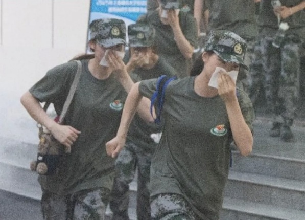 图为2024级学生军训消防演练
