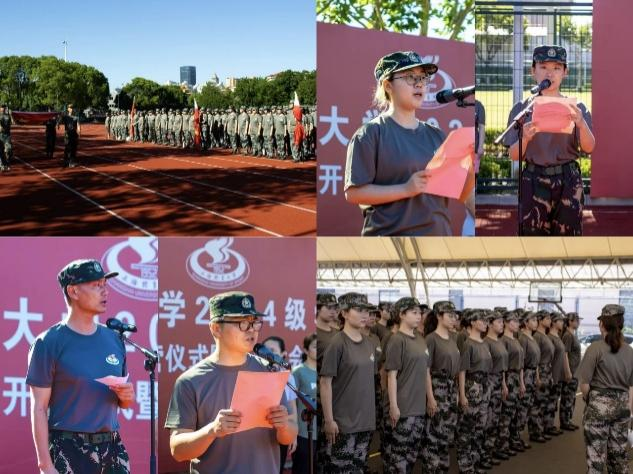 7月1日,军训开营仪式在西田径场举行。校党委副书记、副校长王继红向军训团授旗,并勉励学生践行“身心一统、兼蓄竞攀”的校训,以军人标准锤炼意志。教官代表韩超越、教师代表王长伟、学生代表任劲秋分别发言,提出“掉皮掉肉不掉队”的纪律要求与“传承红色基因”的使命担当。