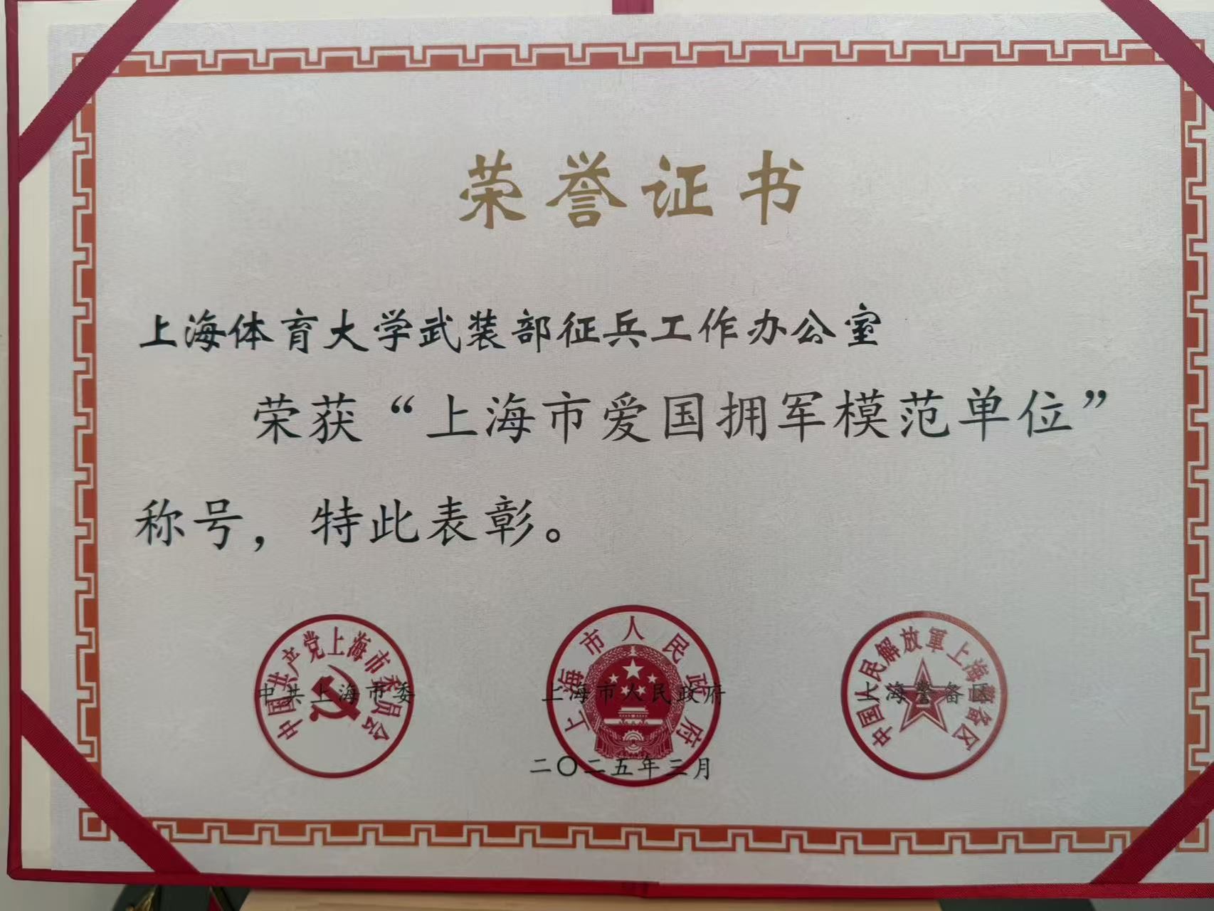 本网讯 近日,红足一1世足球网官方网站武装部征兵工作办公室荣获2025年“上海市爱国拥军模范单位”称号,标志着红足一1世在服务国防建设、拥军拥属工作方面取得突出成效。