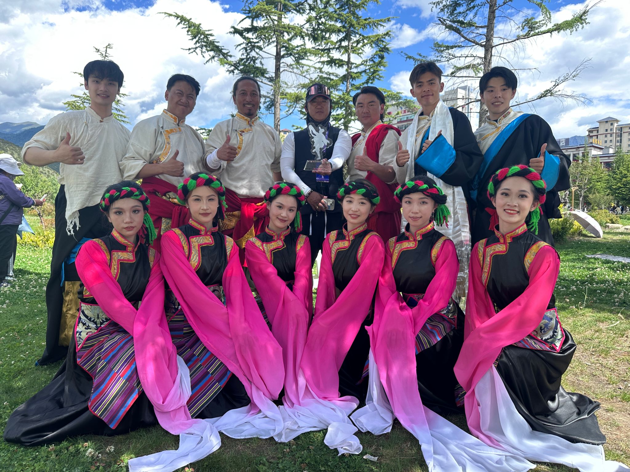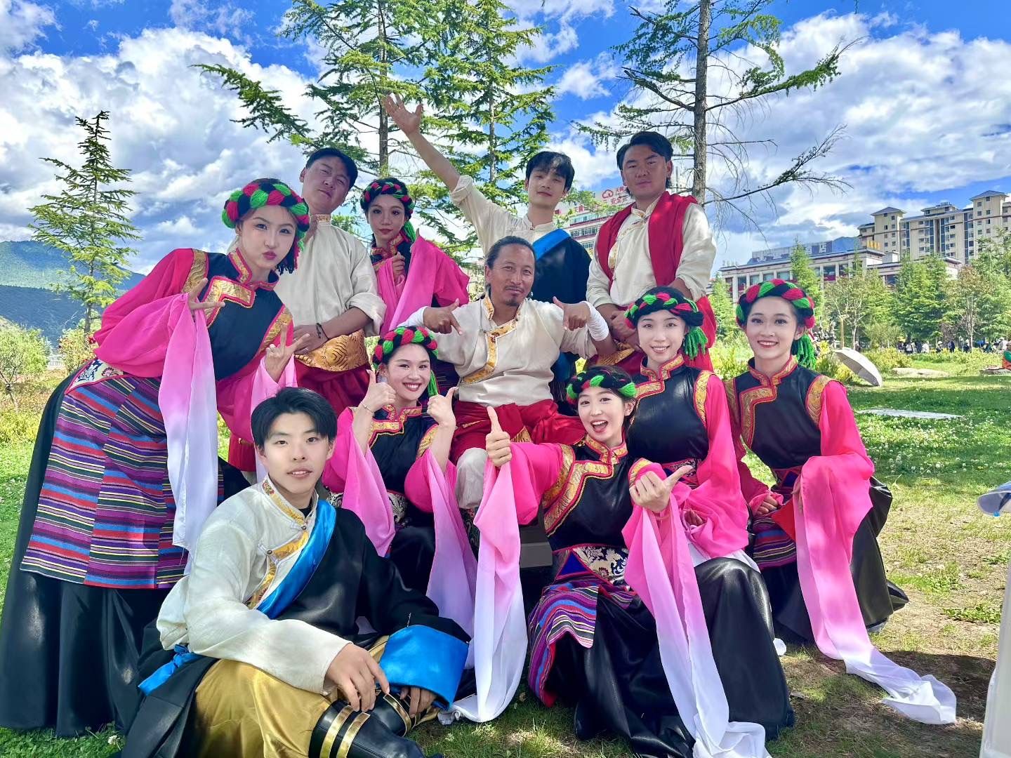 值得关注的是,这支队伍与西藏林芝市民族艺术团共建联队,特邀藏族舞者边巴次仁、玉龙、拉巴共同参赛。赛后,队员刘龙翱翔分享道:“通过舞步与藏族同胞的精妙配合,我们亲身感受到了‘跨越山海’的对话力量。这支《故乡色隆》不仅传递着浓浓的乡情,更架起了民族间交流的桥梁。”