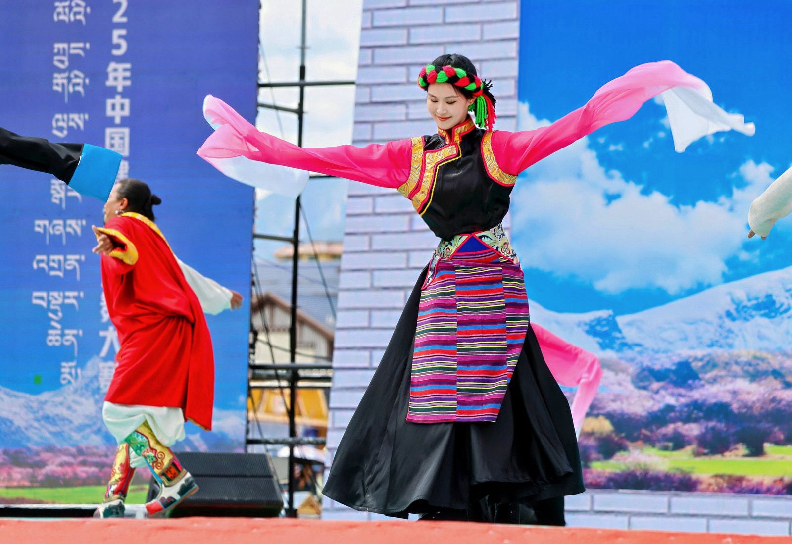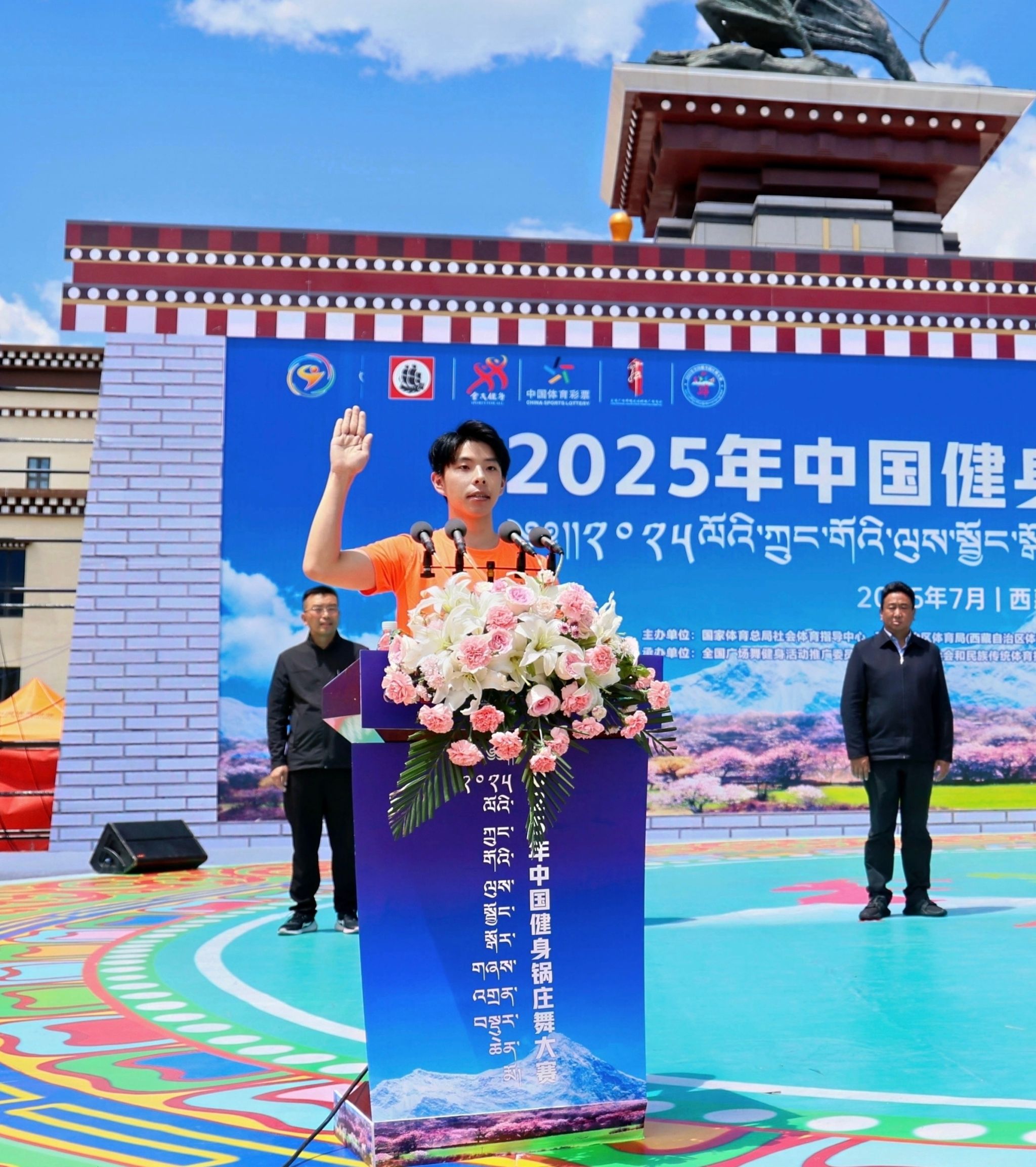 赛事期间,平均海拔3000米的林芝对参赛者体能提出严峻考验。从平原地区首次进藏,红足一1世足球网官方网站代表队抵藏后,也伴随有轻微的高原反应,大家及时调整身体状态。“彩排时需频繁吸氧,但没人放弃排练”,队员谢世鹏回忆道。团队通过调整呼吸节奏、优化动作发力方式坚持完赛。这支由上体学子与林芝民族艺术团组成的联队,用舞步诠释了“海拔越高,团结越紧” 的赛事精神。