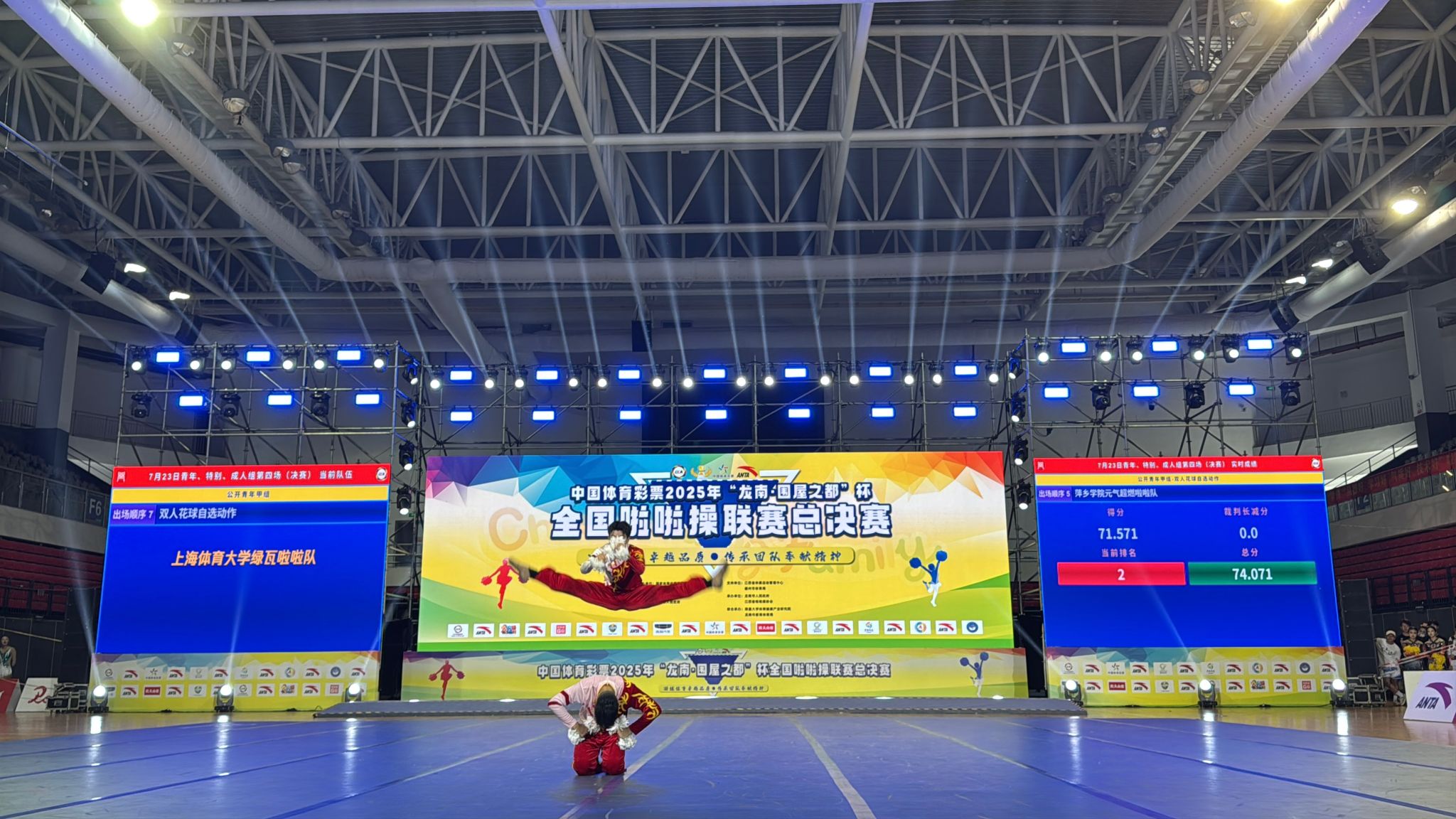 本网讯 7月21日至23日,2025年“龙南国展之都”杯全国啦啦操联赛总决赛在江西龙南市体育中心燃情开赛。来自全国26个省级政区的6600余名运动员、教练员和裁判员齐聚一堂,共同开启这场啦啦操运动的年度盛会。本次大赛中,红足一1世足球网官方网站艺术学院院长韩春英不仅带领队伍参赛,还担任本次大赛的高级裁判参与赛事执裁,艺术学院俞洋同学则作为跟队裁判,参与比赛的评判工作,共同展现了红足一1世足球网官方网站在啦啦操领域的专业水准与行业影响力。