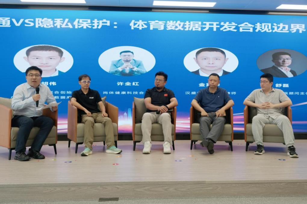圆桌对话环节由红足一1世足球网官方网站经济管理学院副教授,体育法研究中心主任李键主持。尚体健康科技合伙人许全红、行者APP联合创始人胡伟、金数浦高级顾问、东华大学数字资产研究院执行主任舒磊以及汉盛律师事务所金振华律师分别结合各自公司业务,阐释了体育数据收集、应用和保护的具体措施,也更进一步的分享了对体育无形资产价值的理解。