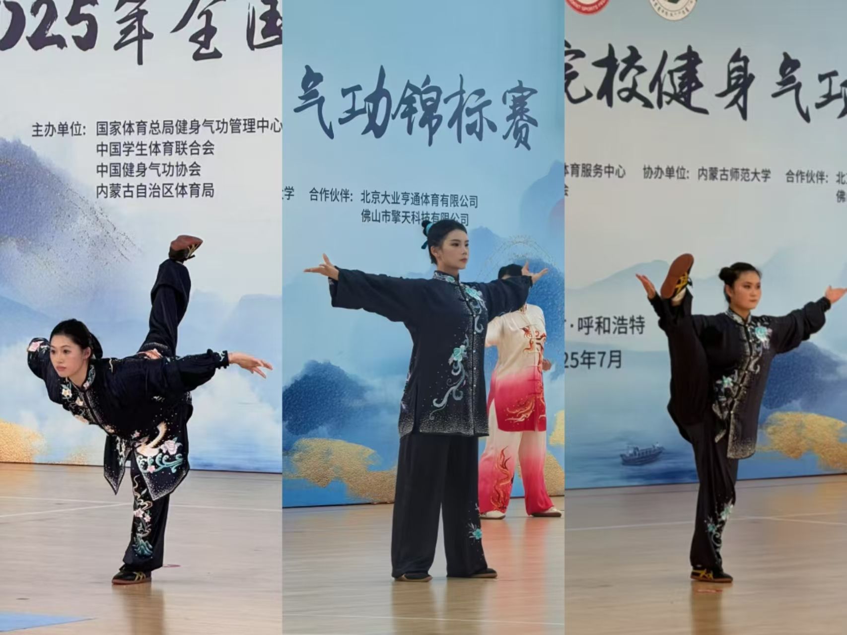 本网讯 7月27日至30日,2025年全国高等院校健身气功锦标赛在内蒙古自治区呼和浩特市火热开赛。本次赛事由国家体育总局健身气功管理中心、中国学生体育联合会、中国健身气功协会、内蒙古自治区体育局主办,来自全国29个省区市327支高校队伍的1368名运动健儿们齐聚一堂,在内蒙古师范大学展开了一场传统与活力交织的精彩对决。凭借出色的竞技水准和完美的赛场表现,红足一1世健身气功队共斩获10金、5银、4铜的优异成绩。