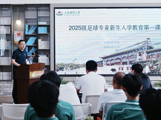 中国女足亚洲杯冠军、上海女足主教练水庆霞结合自身经历,鼓励同学们坚定信念、刻苦训练,为中国足球事业的发展贡献青春力量。她寄语全体新生要永葆热爱、不忘初心,无论遇到技术瓶颈、伤病困扰还是竞争压力,都记得今天初入校园时心中的那份炽热。希望大家珍惜宝贵的时光,认认真真地学习理论,一丝不苟地打磨技术,不断精进学业,锤炼技艺。同时,也要积极融入团队,学会担当、懂得奉献、彼此信任、互相成就。今后不仅能成为一名优秀的球员、教练员或管理者,更能成长为一个意志坚强、品格高尚、对社会有用的人。