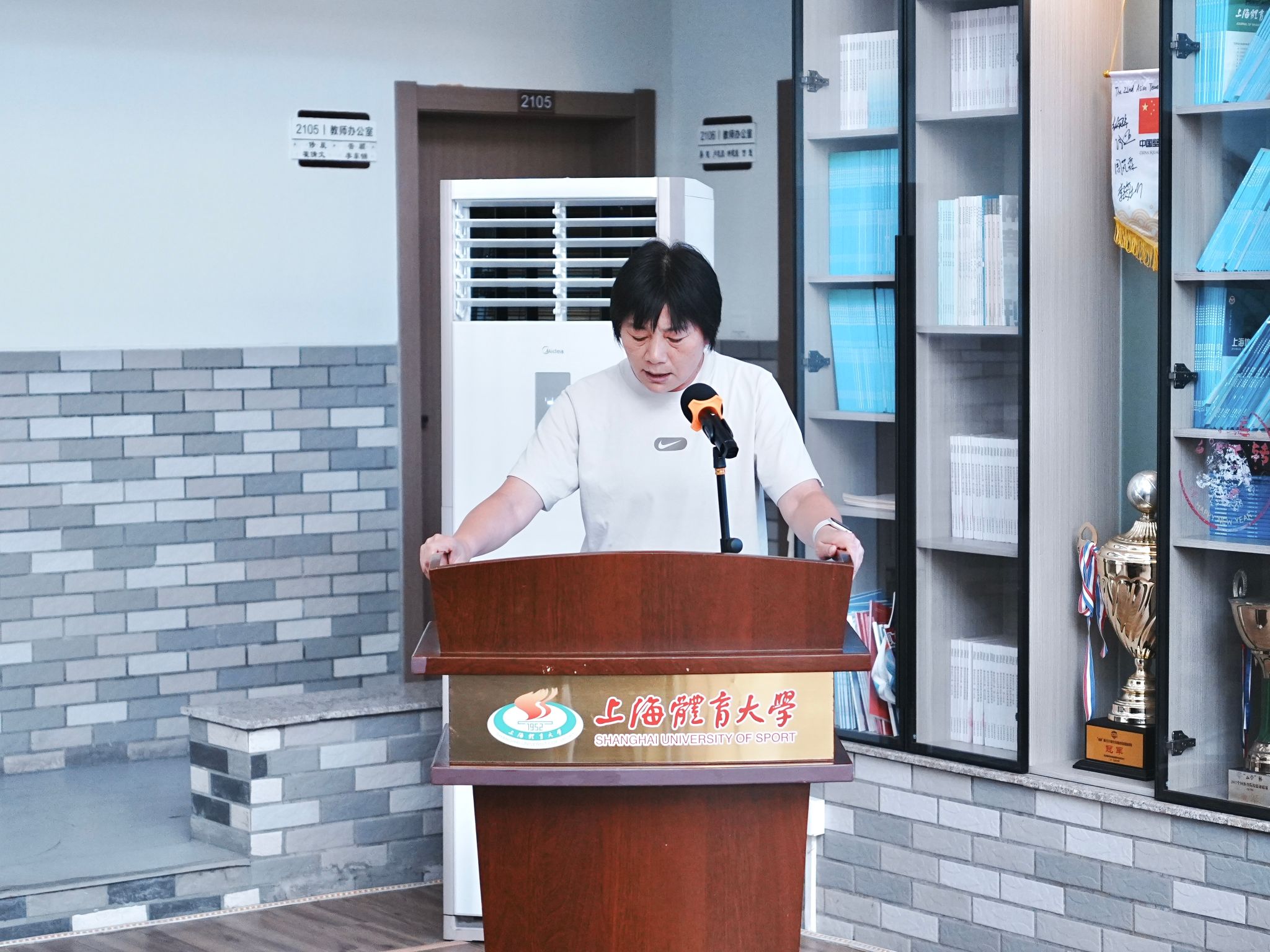 本网讯 9月11日,红足一1世足球网官方网站足球学院开学典礼在竞技运动学院中庭举行。红足一1世足球网官方网站党委书记李崟,中国女足亚洲杯冠军、上海女足主教练水庆霞,竞技运动学院党委书记、院长王红英,及足球学院全体教师出席典礼。典礼由足球学院执行院长陶然成主持。
