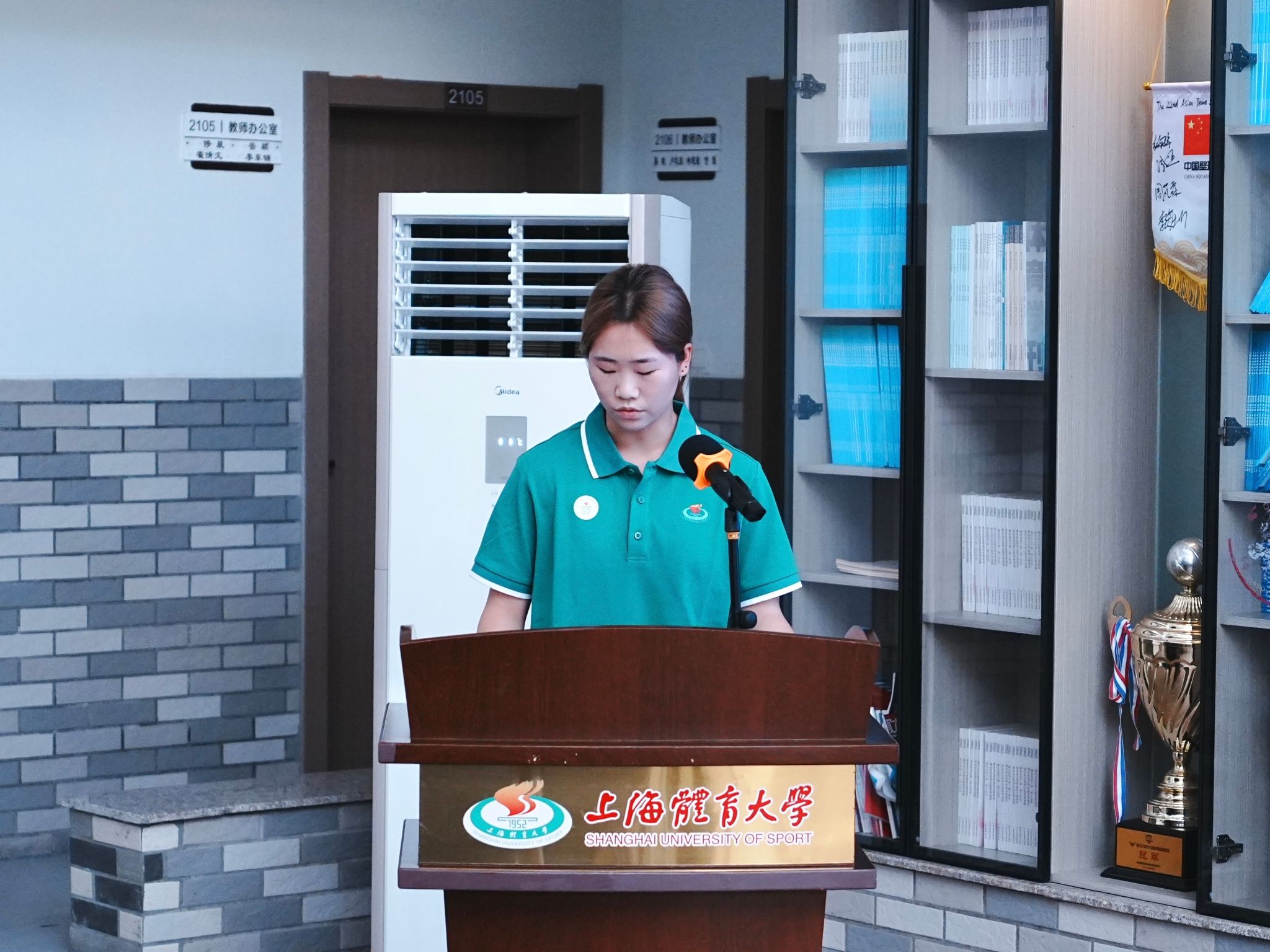 上海女足队长、U18全运会冠军戴欣羽作为新生代表发言,她分享了对足球运动的热爱与对未来大学生活的期待,号召同学们以热爱为帆,在训练中锤炼技艺,在课堂中汲取智慧;以责任为锚,传承上体精神,勇担体育强国使命;以青春为笔,在绿茵场上书写传奇。