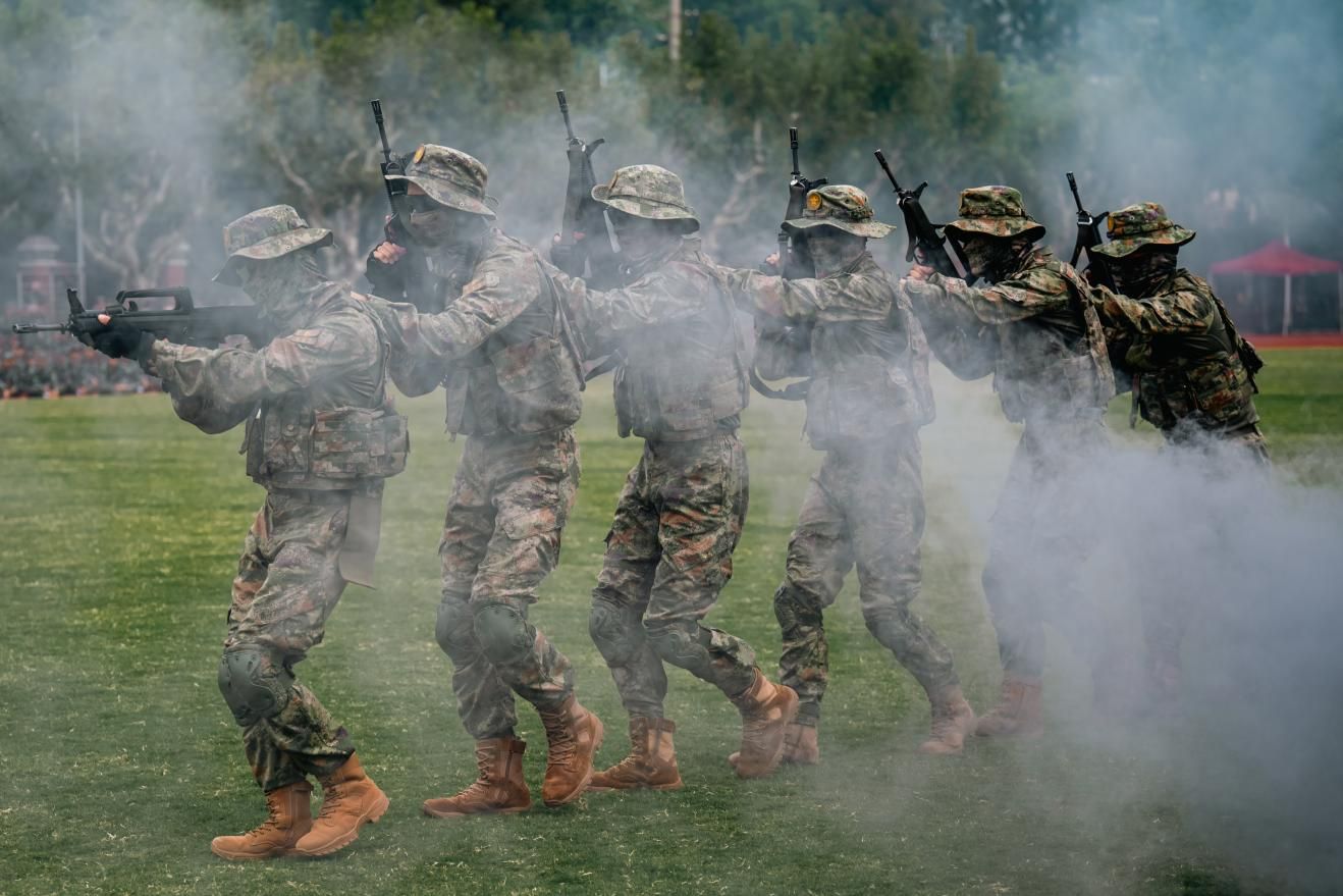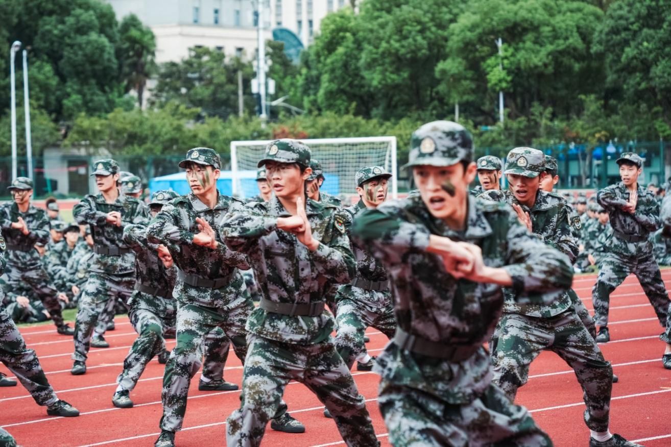 汇演现场,同学们精神饱满、气势如虹。劈旗动作整齐划一、队列行进井然有序、刺杀操与匕首操刚劲有力、军体拳招招精准,每一个动作都凝聚着汗水与坚持,展现了上体学子昂扬向上的精神风貌。