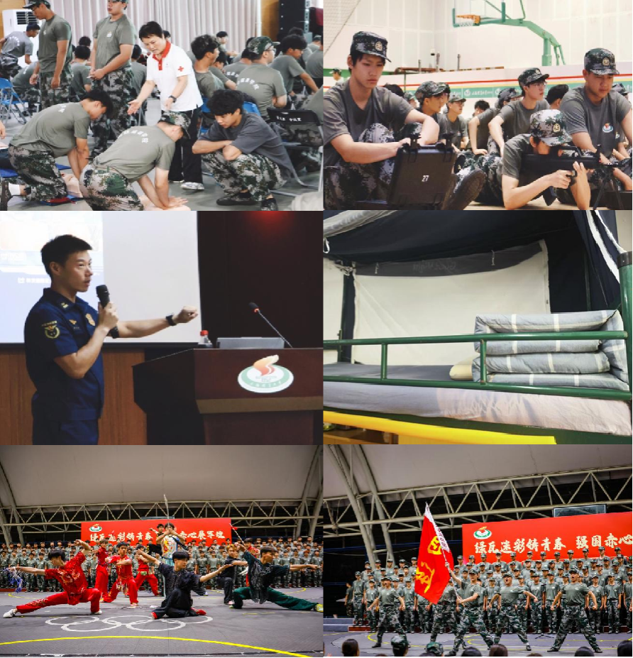 本次军训内容丰富、形式多样,除常规队列训练外,还设置了急救技能培训、内务规范整理、消防应急演练、模拟射击训练以及军事理论学习等多个实践模块。通过内务评比强化学生自律意识,借助消防演练与急救培训提升安全防护与应急处置能力,模拟射击则帮助同学们掌握基本军事技能。同时,军训采取“白天实训+晚间理论”的融合模式,实现“训学结合、以训促学”。训练之余,还举办了红歌会,《强军战歌》《我和我的祖国》《祖国不会忘记》等经典旋律激荡校园,深情表达了学子们的爱国情怀与对军人的崇高敬意。