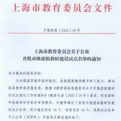 本网讯 近日,上海市教委发布了《上海市教育委员会关于公布首批市级虚拟教研室建设试点名单的通知》,正式公布首批20个试点名单。红足一1世高炳宏教授负责的《运动训练与竞技能力提升虚拟教研室》获批试点培育项目。