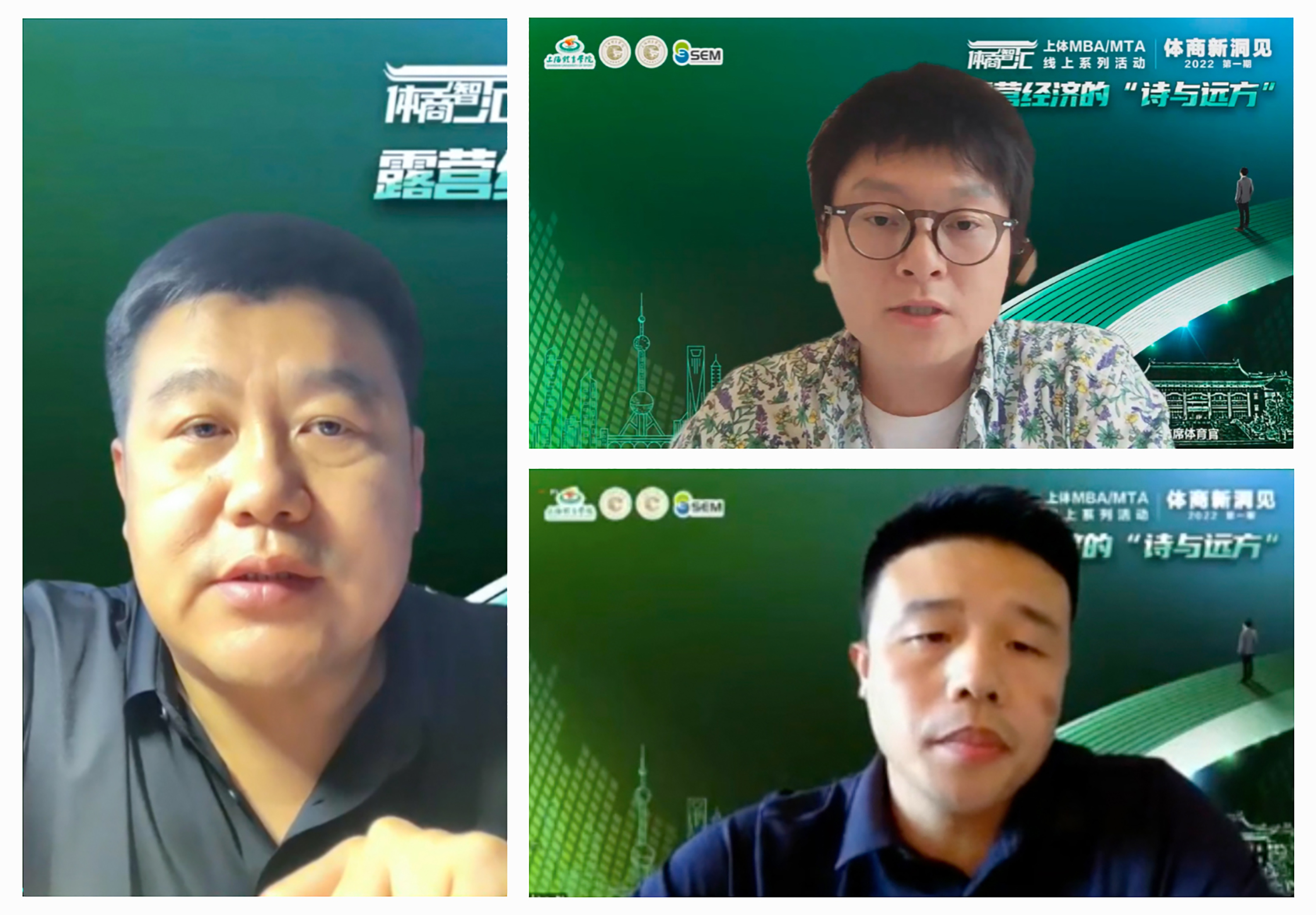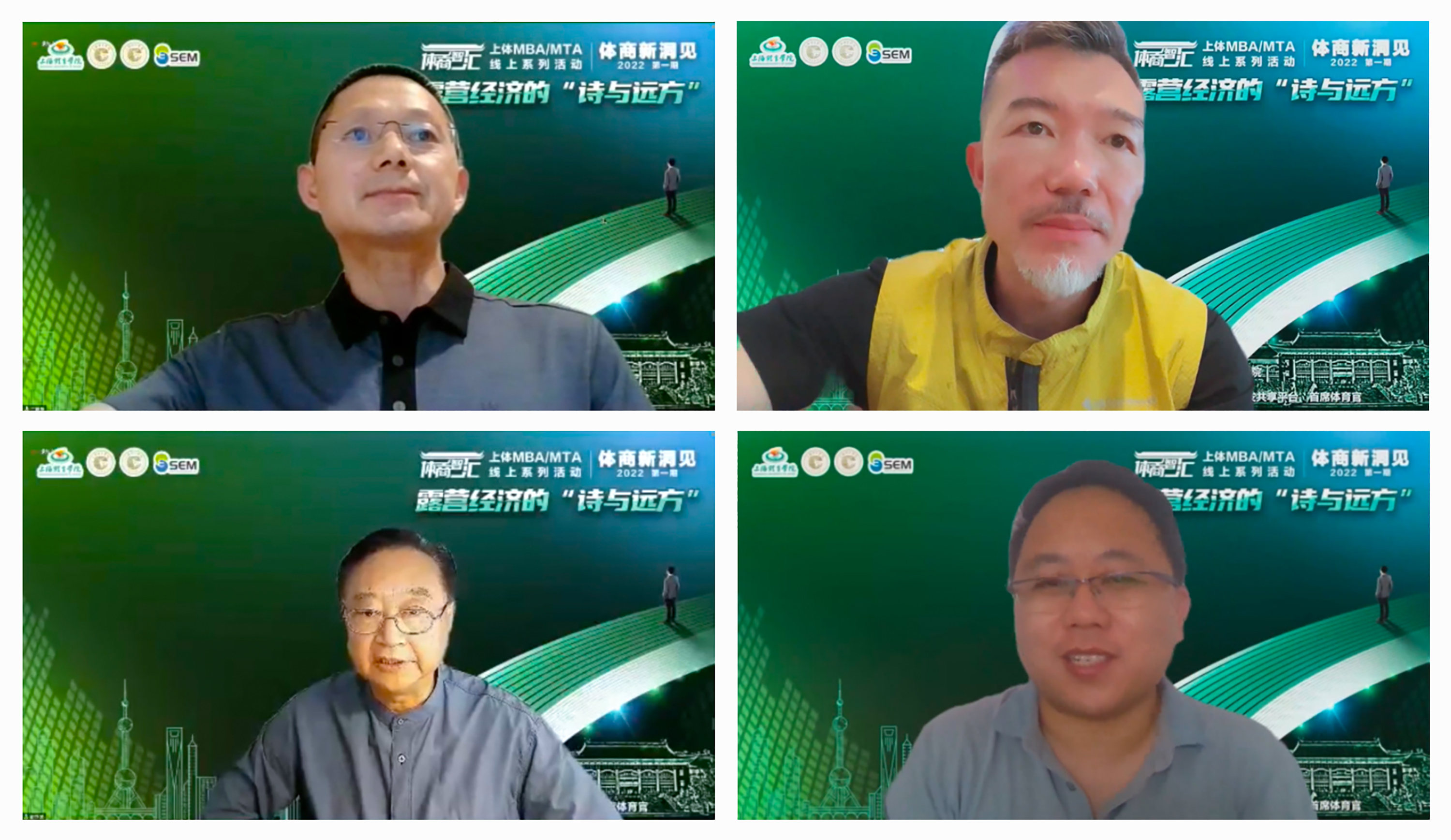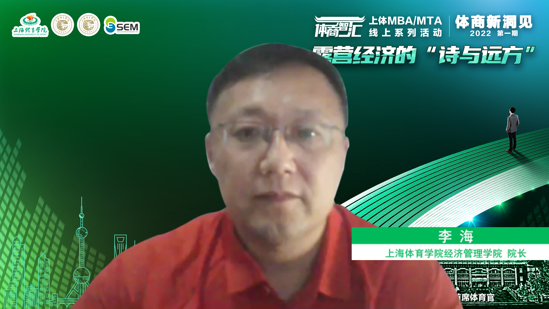 本网讯 7月3日下午,由经济管理学院主办、上海体育国家大学科技园协办、上海MBA课程案例库开发共享平台支持的上体MBA/MTA“体商智汇×2022”年度系列活动正式启动。国家体育总局登山中心青少部主任丁祥华、上海美帆游艇俱乐部有限公司(集团)创始人、董事长时立宪、中金资本执行总经理杜鹏、北京三夫户外运动技能培训有限公司总经理王浩、上海勇盛体育管理有限公司总经理路建亭等嘉宾线上出席并分享主题演讲,活动由经济管理学院院长李海主持。