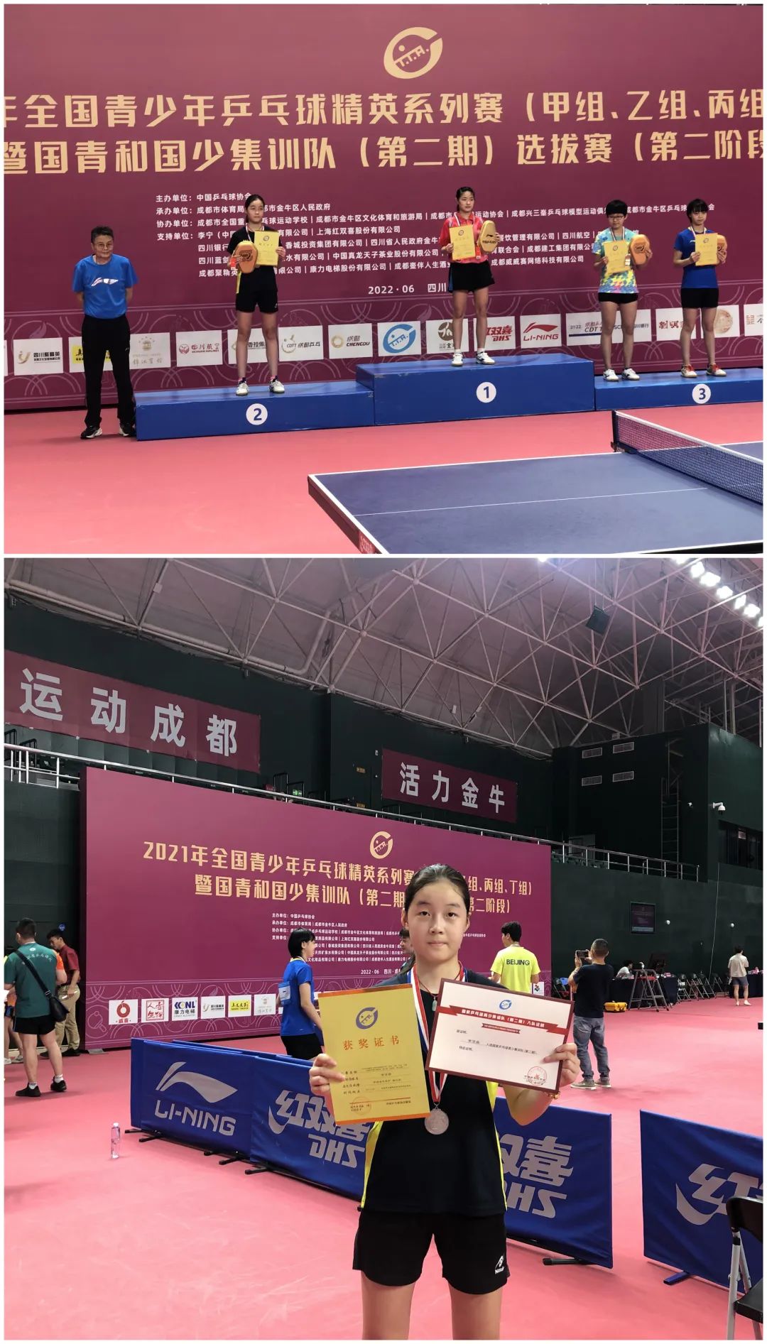 中乒院少年班女队运动员常凌菲在本次选拔赛中发挥出色,一路披荆斩棘夺得丙组第二名的好成绩,获得进入第二期国青国少集训队的名额。