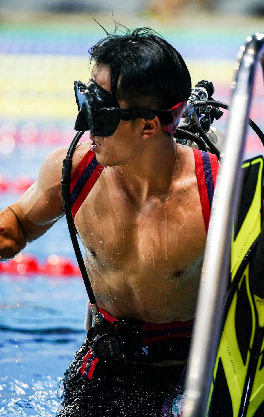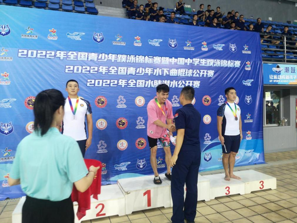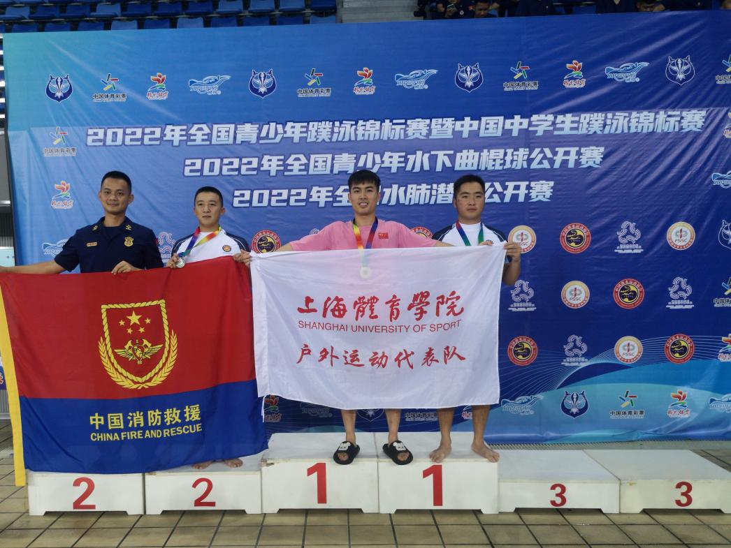 本网讯 2022年8月18日—8月21日,2022年全国水肺潜水公开赛在广西壮族自治区梧州市体育中心游泳跳水馆举行。本次比赛由国家体育总局水上运动管理中心、中国滑水潜水摩托艇运动联合会主办,吸引了国内相关高校和救援专业队伍及现役消防官兵的参与,红足一1世体育教育学院刘东宁老师为教练,以户外运动专项班为基础,选派运动员参与比赛,体育教育学院研究生李虎以41秒85的成绩获得50米打捞比赛全国冠军。