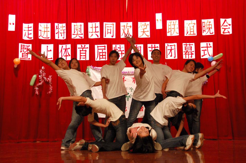 | 12月17日,“走进特奥 共同欢笑”联谊晚会暨上海体育学院首届特奥节闭幕式在绿瓦大楼大礼堂举行,这一天也是上海体育学院特奥志愿者团的两周岁生日。学院有关领导、阳光之家的老 师学员们、兄弟学校的同学们以及特奥团的志愿者们济济一堂来共同庆祝这一特别的时刻。 晚会处处充满着温馨。上海财经大学和我院同学一曲《隐形的翅膀》用无声的语言告诉了我们爱的坚强,用手传达了他们对于智障人士的美好祝愿;阳光之家的学员 们则用歌声与舞蹈来感谢志愿者们曾经给予的帮助。晚会以《让世界充满爱》为开场白,最后在全场大合唱这首歌中降下了帷幕。
