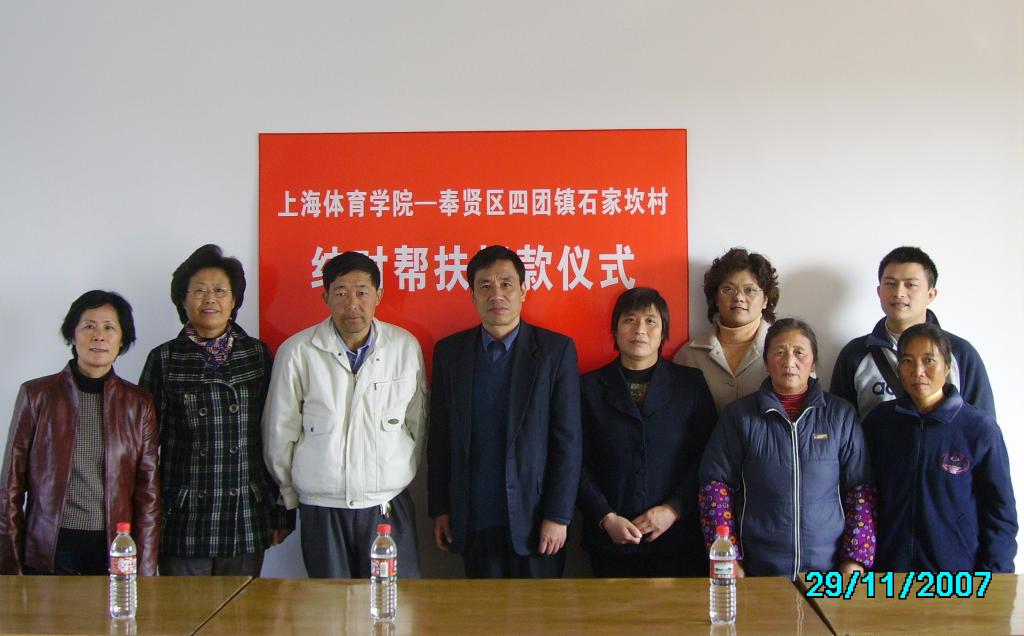 | 11月29日下午,在学院党委副书记庄起民同志的带领下,由我院党委组织部、后勤服务中心、国际交流中心、研究生学生工作处等相关职能部门的代表组成的爱心慰问团来到奉贤区,代表学院党委与四团镇石家坎村举行了“结对帮扶”捐款仪式,将象征着无私关爱的2万元爱心捐款交到了石家坎村村支部及受助的四个贫困户手中。 捐款仪式上,石家坎村党支部书记朱志君同志首先介绍了该村的具体情况,他代表全村村民向我院自结对以来所给予的各项支持和大力帮助表示衷心的感谢。随后,庄起民副书记代表学院将爱心款交到结扶对象手中。受助的村民感动不已,在致答谢词时声泪俱下,连说了两遍“谢谢共产党!谢谢上海体育学院!”庄书记代表学院向结扶对象表示,今后我院将在扶贫帮困、党员活动、志愿者服务等方面继续加强对石家坎村支持与帮助的力度,努力营造“结对共赢”的良好氛围,把结对活动深入持久地开展下去。