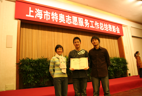 | 11月21日下午,上海市特奥志愿者服务工作总结表彰会在上海展览中心友谊会堂举行,市委副书记殷一璀、市委常委、宣传部部长王仲伟、副市长周太彤,市文明办、科教党委、团市委、市残联等部门领导,区县、高校分管领导、志愿者组织单位文明办、团委负责人和优秀志愿者代表出席了大会。会议由王仲伟部长主持。 会前播放了特奥志愿者专题片,我院开幕式引导员、特奥志愿团的多个工作场景出现其中,一幕幕温馨感人的场面不断涌现,成为难忘的风景。