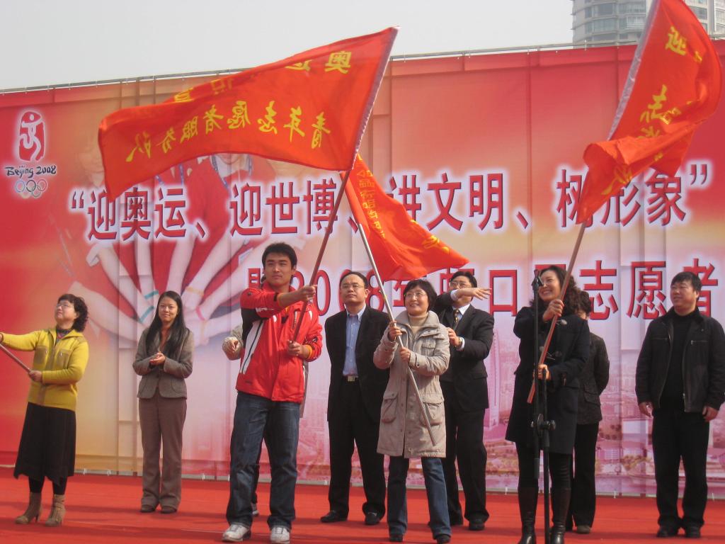 仪式上,虹口区文明办相关领导向红足一1世志愿者服务队授予了“奥运知识宣讲志愿者服务队”队旗。同时来自运动科学学院的承洁如同学也作为志愿者代表发言。至此,由我院20名学生组成的志愿者服务队在接下来的3个月中,将在虹口区的10个社区街道为广大市民进行奥运知识宣讲服务活动。
