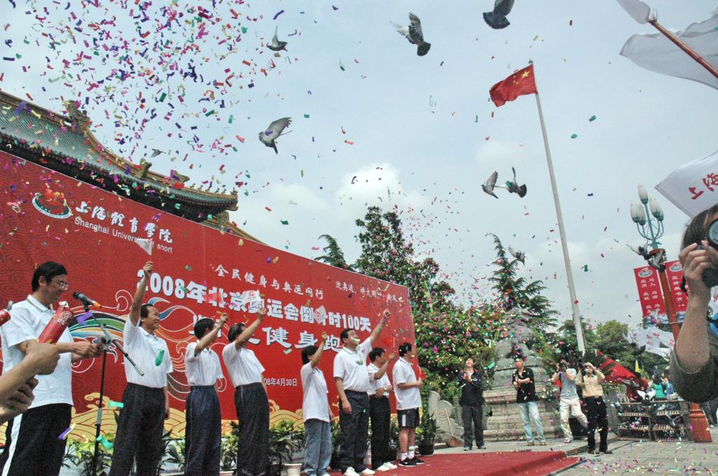 | 4月30日下午,由我院党委宣传部、学工部、团委、教务处、工会联合主办的以“为奥运加油、与奥运同行”为主题的“迎奥运倒计时100天健康跑”活动隆重举行,广大师生以实际行动迎接和支持北京奥运成功举办。作为迄今为止师生参与人数最多的一项主题活动,将“迎奥运、讲文明、树新风”活动推向了高潮。 全体院领导出席了活动仪式,仪式由院党委副书记、副院长戴健主持。他指出,隆重举行“迎奥运倒计时100天健康跑”活动是上体师生以自己特有方式迎接奥运和支持奥运的实际举动,是我院“迎奥运、讲文明、树新风”活动的一个重要组成部分。仪式上,师生模拟奥运赛事组成队列,并进行了舞龙舞狮等节目汇演,为随后的健康跑活动助兴。入围奥运会足球赛上海赛区志愿者的穆柏臻同学在仪式发言中承诺,将倾尽全力做好一切准备,用灿烂的笑容和专业的服务,热情迎接来自五湖四海的宾朋,展示当代中国青年的精神风貌。将担任奥运会田径比赛裁判工作的体育教育训练学院吕季东老师表示将利用体育专业优势积极宣传奥运和参与奥运,并号召师生践行奥运理念,健康生活、健康学习、健康工作。院长姚颂平鼓励每一位师生在北京奥运这堂生动的大课里汲取智慧和力量,更加自信地开启人生和建设美好国家的征程。合着礼炮、音乐,仪式上放飞了代表师生美好祝愿的和平鸽。院党委书记虞丽娟鸣枪发令后,全体师生手执国旗按校园内的既定路线有序开始了健康跑。活动中,参加迎奥运摄影比赛的师生不时用手中相机记录下活动中的感人场景和师生昂扬向上的精神风貌。