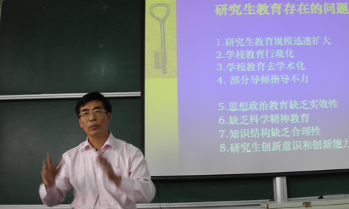 作为在教育战线辛勤耕耘三十余载的资深教育工作者,在谈到我国研究生教育存在的问题时,肖教授指出了教育行政化、研究生创新意识和创新能力不强、缺乏科学精神教育等现实问题。他呼吁研究生教育应实现学术价值的回归,谆谆教导同学们要将学位与学习、治学与做人、理论学习与实践活动、尊师重教与敢于质疑、独善其身与兼济天下相结合,做一名知识、能力、人格全面发展的具有良好综合素质的研究生。