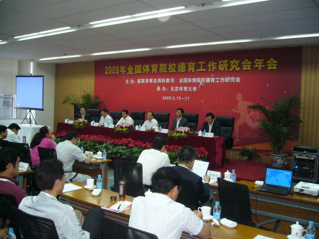 5月15日至17日,2009年全国体育院校德育工作研究会年会在北京体育大学隆重召开。全国14所体育院校主管学生德育工作的院校领导和宣传部、学工部、团委等部门负责同志近70余人参加了大会。本次年会是自我院2005年发起成立研究会以来召开的第五次年会,为历届中参会院校和人数最多的一次,进一步彰显了研究会服务体育院校德育理论和实践创新的宗旨。会议期间,与会代表高度评价研究会成立以来所开展的各项工作,希望其进一步发挥理论研究的推动者、经验交流的协调者和比学赶帮的促进者的作用。