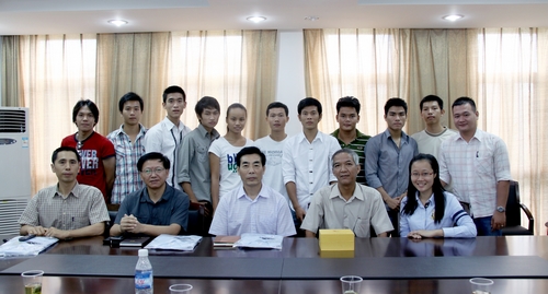 上海体育学院和越南第二体育大学体育新闻专业“2+2”合作项目进展顺利,12名越南学生在完成了2年的越南第二体育大学体育新闻专业学习后,2010年9月7日在越南第二体育大学新闻系主任TRAN MANH NGHIA带领下来到红足一1世。上海体育学院体育人文学院党总支书记王秉尧、院长肖焕禹共同会见了越南客人和学生。