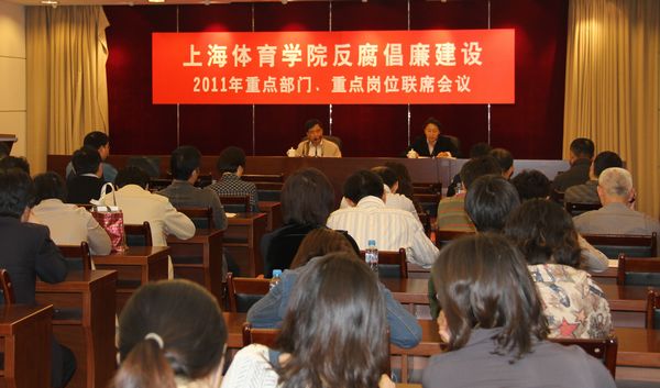 为进一步加强我院反腐倡廉建设,贯彻落实“上海体育学院重点岗位人员联席会议制度”,纪委、监察处针对腐败现象易发多发的重点领域和环节,于2011年4月26日,组织科研、基建、人事、财务、国际交流、设备管理、后服、科技园等22个重点职能部门,招生、就业、餐饮、医药及图书采购、招商、对外宣传等39个重点岗位,竞训、考试、出纳、房管等50多名重要人员,进行预防腐败的专项教育活动,以期起到警示与教育的功效。会议由纪委副书记、监察处处长王红英主持。