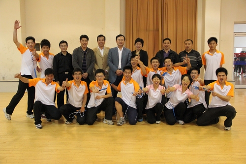 4月27日下午四点,院党委书记戴健、学工部部长游林生、体育休闲系系主任卫志强、党总支书记李芳、团委书记霍圣录等赴体操房,亲切慰问了我院参加“‘五月的鲜花,永远跟党走’——全国大学生校园文艺演出活动”的花样跳绳队演员,为即将启程赴京参加晚会演出的同学加油鼓劲。