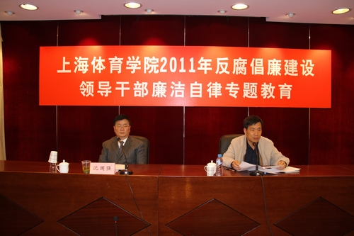 会议由院党委副书记,纪委书记庄起民同志主持,院领导及全院中层以上干部参加了会议。会上庄书记传达了市教卫纪工委下发的《关于教卫系统开展专项整治违规收送礼金礼券购物卡工作的通知》文件精神,希望各部门结合《廉政准则》的学习,以及近期开展的《上海体育学院关于开展专项整治违规收送礼金礼券购物卡工作的实施方案》,召开专题学习会议,实施自查自纠,坚持正面教育,规范管理,完善制度,形成长效机制。
