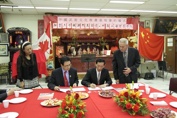 9月8日至11日,院长章建成教授率团访问加拿大。访问期间,我院与加拿大阿尔伯塔洪门民治党驻卡尔加里支部共同签署了“中国上海体育学院和加拿大洪门民治党驻卡尔加里支部共建中国武术文化推广基地合作协议书”。中国驻加拿大卡尔加里总领事馆王宪民、卡尔加里民治党负责人文伟建等出席了签署仪式。