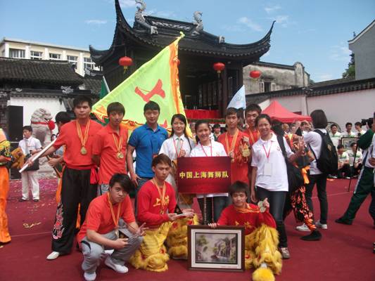 本网讯2011国际龙狮公开赛暨沪港澳台龙狮精英赛于9月22日至25日在上海浦东举行。我院龙狮队共派出舞狮运动员8人,舞龙运动员1人代表中国上海参加全部三个竞赛项目的角逐。经过两天激烈的拼搏,我队最终获得南狮传统项目冠军、技能项目全能冠军、自选套路季军的好成绩。