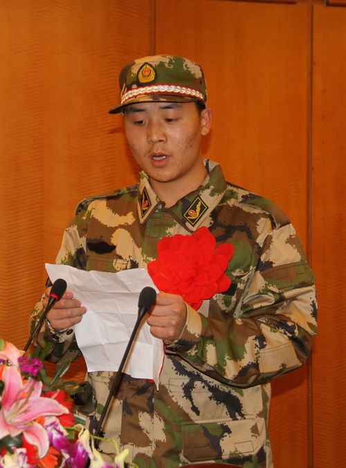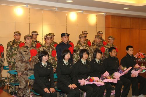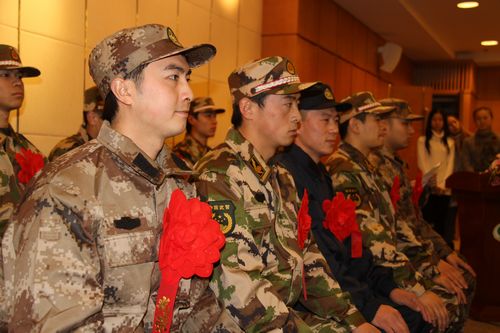 会上,金黄斌宣读7名退伍学生基本情况和获奖情况。他指出,7名退伍学生在部队顽强拼搏,获得了优异成绩,全部获得嘉奖,6人获得“优秀士兵”光荣称号,3人荣获“三等功”。
