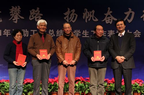 本网讯12月21日下午,我院2011年学生资助工作总结暨学生工作表彰大会在学生活动中心小剧场隆重举行。院党委书记戴健,院长章建成,党委副书记、纪委书记庄起民,党委副书记杨培刚,党委副书记、副院长陈晓峰,副院长赵光圣出席大会。
