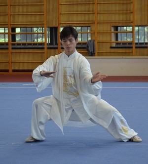 尤其值得一提的是,本次研究生武艺展示大会首次有博士生们加入。所谓“东枪西棍,南拳北腿”,张平安的扭丝棍充分展示了陇原四大名棍的风采,缠丝纽带,变化无穷。朱君的陈氏太极拳竞赛套路同样精彩,快慢相间,蓄发相变。而最让人眼前一亮的便是留学生阮友龙所展示的越南武术。阮友龙来自越南胡志明体育学院,获得过东南亚泰拳比赛冠军,他的表演既展现了传统武术的攻防技巧,又透露出浓浓越南文化特色,体现了速度、力量与美的统一。