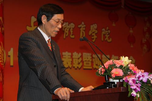 本网讯2012年1月10日下午,我院2011年总结表彰大会暨迎新年联欢会在绿瓦大礼堂举行。会上,党委书记戴健发表新年寄语,院长章建成作了2011年学院工作总结。党委副书记杨培刚,党委副书记、副院长陈晓峰,副院长平杰、赵光圣,以及离退休干部代表张炳昌、马如棠、胡爱本、俞继英、虞重干等出席会议,并与全院教职工一起观看了联欢会。总结表彰大会由党委副书记、纪委书记庄起民主持。